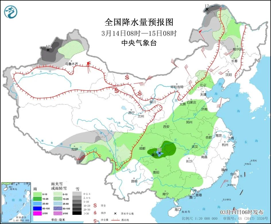 从过去12个小时的降水情况来看,只有山区部分点位、远郊区部分点位出现雨水,城区还没有降雨。 根据预报,今天早晨到白天,北京阴转小雨(北部小到中雨),最高气温12℃;夜间阴(北部东部有小雨)转多云,最低气温6℃。 气象部门提醒,今天有降雨,出行需携带雨具并注意交通安全;气温有所下降,体感阴冷,外出请及时调整着装 预计13日至14日,京城天空云量较多,气温有所回升,白天最高气温14℃,夜间最低气温7℃。15日前后有大风降温天气过程。由于目前处于季节更替时期,冷暖空气较为活跃,气温起伏变化大,请市民及时关注临近预报,根据天气变化合理安排出行计划。 另外,此次空气污染过程还没有彻底结束。截至今早6时,全市空气质量整体处于轻度污染水平。预计今天白天,受降水影响,扩散条件略有改善,空气质量维持轻度污染。13日预计仍为轻度污染,14日将达到中重度污染,15日改善到良好至轻度污染水平。