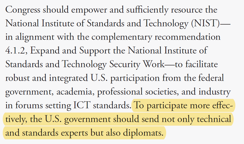 报告明确建议派外交官员参与ICT领域的标准化组织 这意味着今后中国的企业和科研机构在国际技术标准化组织里将直接面对美国外交官员,技术标准化工作将不再仅仅是技术和商业利益的角逐。 建议美国政府和议会必须积极资助和帮助外国盟友,积极改进国际网络空间政府调查的工具。 建议美国政府利用经济制裁和贸易执法行动来打击对手。 建议增强国家从网络打击中恢复的弹性,进行周期性的国家级的网络安全风险评估,建立国家网络安全资助基金,政府和国会必须安排专门机构和资金来协助和指导私营企,来制定在网络安全事件下的反应,补救和恢复计划。 建议在选举,教育等领域排除外国势力的影响,涉及美国经济和文化的方方面面。 建议 国会应该建立和资助国家网络安全认证和标识,来认证和管理信息和通信技术产品,并称国会应该通过法律来确立软件,硬件和固件最终产品的集成商对安全问题承担责任。 建议国会应该资助和指导国土安全局来建立研发中心,来指导制造国家等级的网络安全产品,颁布开发认证。 建议制定云服务,互联网协议,电子邮件等产品的安全认证与标识体系。 建议制定信息和通讯行业供应链信任体系和战略,加强外国投资委员会的能力,防止敌对国家通过投资美国公司而获得美国的技术。未来中国企业在美国建立研发中心,资助美国科研机构,收购美国企业和技术,都将面临更加严格的审核。 通过上述各种安全认证和标识策略,美国有能力把它怀疑的中国产品完全排除在美国市场之外。并且这种认证不只在美国本土存在,这些建议还明确要向美国的盟友推行这些措施。 建议制定国家数据安全和隐私保护法律。报告中讨论了端到端加密技术的得失,虽然能够更好地保护网络安全和隐私,但也导致美国政府无法进行执法监听,此讨论没有定论。 建议加强对私营企业的管理。政府项目管理,安全认证,报告制度,责任划分,政企合作等等。 上述具体行动的建议,虽然对中国企业没有直接影响,但是必然会令美国私营企业在选择供应商时增加了对中国产品和技术的排斥。 除了上述建议外,报告还建议增加美国国防部网络战预算,强调增强国防部在网络战方面的基础建设,通过设立专门的机构,增加专门的预算,增强研发能力,打赢网络战。 美国“网络空间日光浴委员会”的这份报告和建议并非纸上谈兵,包含上述建议在内的大约75条具体行动建议中,有许多条大概率会被美国国会和政府采用。 《连线》杂志此前报道,“网络空间日光浴委员会”的主席,缅因州议员Angus King表示,报告中的半数建议都将被纳入National Defense Authorization Act(国防授权法),将在今年五月份提交国会审议。(微胖)