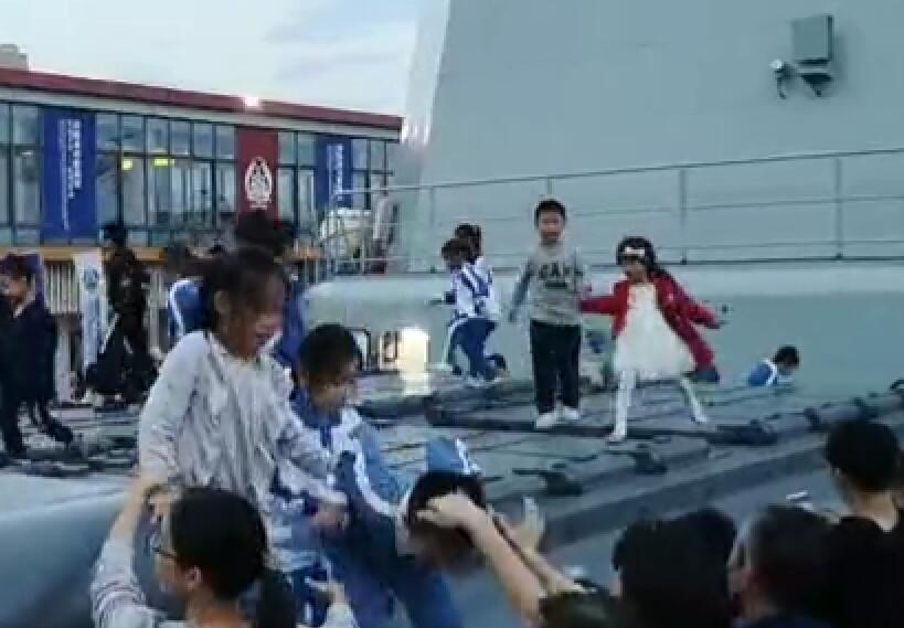孩童在国产军舰上“跳房子”:打造威武战舰,为的就是国泰民安