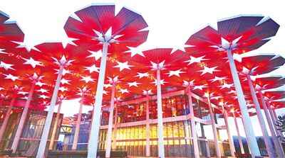 此外,中国馆还设有广东室内展区,以“榕树下美丽广东”为主题,融合了小鸟天堂大榕树、广东剪纸、岭南盆景、丹霞珠水等创意元素,以艺术的手法和声光电现代展示手段,营造出广东生机盎然的自然生态环境、姹紫嫣红的生态景观和多彩多姿的人文生活景观。