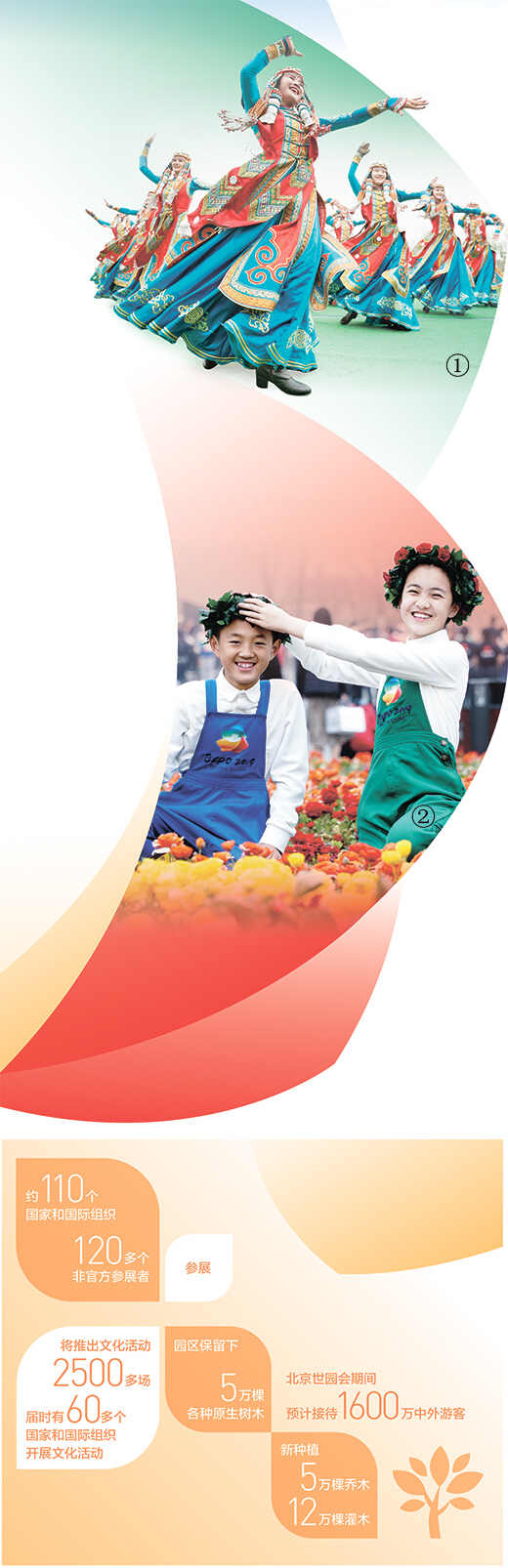 北京世园会将汇聚不少于100个国家和国际组织等官方参展者,不少于100个国内省、自治区、直辖市及国内外专业机构和企事业单位等非官方参展者,吸引不少于1600万人次的参观者。深化相互交流,促进共赢发展,让绿色成为生活的主旋律,让园艺成为创意的新载体,打造“世界园艺新境界,生态文明新典范”的文化盛宴。