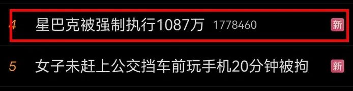 星巴克又出事!被执行1087万,网友:欠租了吗?