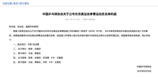 5月16日,中国乒协在其官网公布了中国乒乓球队东京奥运会参赛运动员名单。其中很多已经在网友的预料中,不过对于刘诗雯落选女单,还是引起不小的反响。那么,奥运名单是怎么出炉的? 据介绍,奥运名单先由教练组集体讨论后提出参赛运动员建议名单,经选拔工作领导小组讨论并报中国乒乓球协会主席办公会研究通过后,报国家体育总局核准。 具体名单如下: 混合双打:许昕/刘诗雯 女子单打:陈梦、孙颖莎 男子单打:马龙、樊振东 女子团体:陈梦、孙颖莎、刘诗雯 P卡:王曼昱 男子团体:马龙、樊振东、许昕 P卡:王楚钦