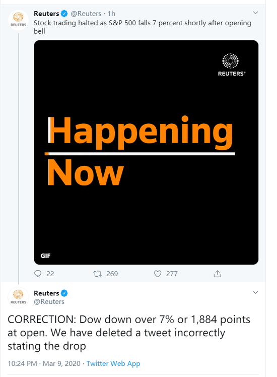 原标题:美股23年来首次熔断,最尴尬的是特朗普 | 京酿馆 3月9日的“黑色星期一”,打破了所有“美股例外”的神话:美股不但“熔断”,且在一度触底反弹后再度掉头向下。 文 | 陶短房 瞬间蒸发3万亿美元……美股熔断,成了全球眼下最受关注的话题。 美国东部时间3月9日上午,美国纽约证交所早盘交易开始后仅6分钟,即因暴跌触发美股第一级熔断机制,从而导致这个世界最大股票交易市场全部股票交易自动中止15分钟。 这是美国股市引入熔断机制以来的第二次,也是熔断机制调整为现行规则后的第一次。 “熔断”的来龙去脉 所谓“熔断机制”(Curcuit Breakers),是指当股指跌幅达到某个设定标准时,将根据该机制自动全部中断交易若干分钟,以便使投资者得以借此了解市场情况,获得更多信息,并在冷静下来后根据市场实际情况作出理性的决策。 熔断机制的出现,源于1987年10月19日、史称“黑色星期一”的美国战后最大股灾:当日美股因莫名恐慌单日创出历史最大跌幅,其中道琼斯指数收跌508点,跌幅高达22%,令美国金融市场“失血”惨重,美国经济也遭遇“大地震”。“熔断机制”正是金融学家为避免重演“黑色星期一”而设置的一道“保险丝”。 最初版本的熔断机制系“黑色星期一”后3个月退出,最初的指标是按单日下跌点数,而非跌幅百分比确定。 1997年1月熔断机制首次调整,触发阈值增加100点,但同年10月27日道指就单日暴跌7.18%,从而首次,也是“黑色星期一”之前唯一一次触发“熔断”。 1998年4月15日,新的熔断机制出台,修改内容包括将熔断机制触发标准从原来的7%提高至10%,并将熔断值参照标准从前一个交易日收盘值,改为每个季度开始时纽交所所规定的平均值,其目的显然意在尽可能避免“熔断”,因此受到不少批评。 鉴于熔断机制在2008-2009年“次贷”危机中“呆若木鸡”,毫无反应,2012年5月31日,纽交所再一次,也是迄今最新一次修改熔断机制。 一是用标普500指数取代道琼斯指数作为熔断基准指数,二是将原先只有一档(最初为7%,后改为10%)的熔断阈值改为三档,即7%、13%和20%,新的熔断机制自2013年2月4日起生效,三是取消“平均值机制”,重新恢复最初的“前一日收盘价机制”。 究其目的,显然是希望熔断机制能更好地实现“以熔断促使市场冷静”的设计初衷。 根据现行机制,当标普500指数实时价较前一个交易日收盘价相比跌幅达到7%,即触发15分钟一切交易中止,跌幅达到13%触发又一次15分钟一切交易中止,跌幅达到20%触发当天剩余交易时间交易全部中止。如“熔断阈值”达到的时间在当天美东时间15时25分或之后,则交易不会停止。 许多金融学家如美国证券交易委员会前研究经济学家格雷迪等人指出的,熔断机制的初衷固然很好,但在许多国家股市中的实践效果却并不理想,甚至事与愿违,因为“设置熔断值似乎会产生一种奇特的吸附引力,从而令股指更容易接近熔断值,或在‘熔断’后当天剩余交易时段令反弹受挫,使收盘价重新接近熔断值,并在随后几天的交易中继续低迷”。 但这一“熔断引力定律”似乎唯独不适合美股:1997年“10·27”熔断翌日,美股道指单日大涨4.71%,涨了337.17点。此后尽管美国金融市场乃至整个国民经济风云变幻,但“熔断”却一度被认为绝踪美国市场。 但3月9日的“黑色星期一”打破了所有“美股例外”的神话:美股不但“熔断”,且在一度触底反弹后再度掉头向下,最终如“熔断引力定律”所预示的“就地躺平”,道指大跌两千点以上,跌幅近8%。