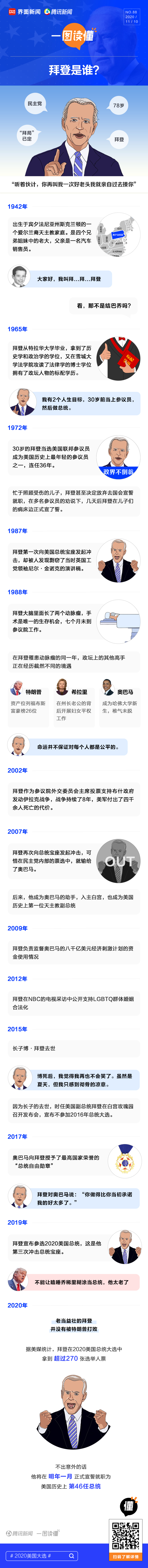 2020年美国总统大选计票工作仍在进行中。根据美国亚利桑那州州务卿网站数据,当地时间11月11日,亚利桑那州结束计票程序,拜登正式将该州“收入囊中”,这也是亚利桑那州近70年第二次“翻蓝”。 与此同时,特朗普竞选团队仍在关键州提起诉讼。据CNN报道,当地时间11月10日,特朗普竞选团队拿出了234页的证词,指控密歇根州存在选举舞弊的现象。 不过,拿下亚利桑那州后,进一步巩固了优势局面的“当选总统”拜登与其竞选搭档哈里斯,已经开始着手安排组阁事宜,为筹建新一届政府做准备。 目前,拜登公布了哪些任命计划?计划组建的内阁呈现出哪些特点?一文读懂拜登的组阁之路。 在组阁计划中,拜登公布了哪些人选? 据《纽约时报》报道,当地时间11月11日,“当选总统”拜登宣布任命他的长期助手、民主党资深官员罗恩·克莱因担任白宫办公厅主任。白宫办公厅主任是美国总统办事机构的最高级别官员,人称“白宫大总管”。 拜登表示,“多年来,克莱因一直是我的宝贵伙伴。如今正值我们需要团结国家、共渡难关的关键时期,克莱因拥有着丰富的工作经验,具备能与各个政治党派人士合作的工作能力,这正是一名白宫办公厅主任所应具备的素质”。 “当选总统”拜登宣布任命罗恩·克莱因担任白宫办公厅主任。/ 推特截图 克莱因随后对此项任命进行回应,“为‘当选总统’拜登服务是我一生的荣幸”。克莱因还表示,期待组建一个有卓越才能、并且多元化的工作团队,完成改革议程,寻求弥合国内分歧,帮助拜登与哈里斯应对美国目前面临的挑战。 克莱因与拜登相识已超过30年。1988年,克莱因在拜登竞选团队中担任顾问。1989年至1992年,在拜登担任参议院司法委员会主席期间,克莱因还是他的首席法律顾问。2009年至2011年,在拜登担任副总统期间,克莱因成为了副总统办公室主任,还监督了《美国复苏与再投资法案》的执行。 值得注意的是,克莱因还致力于公共卫生服务。2014年10月,克莱因被时任总统奥巴马任命为埃博拉病毒反应协调员,专门负责协调各政府部门应对埃博拉的工作。 2014年,克莱因被任命为埃博拉病毒反应协调员时与拜登的合影。/ 路透社 马萨诸塞州联邦参议员伊丽莎白·沃伦表示,“克莱因是个绝佳的选择。他了解我们目前遭遇的健康危机与经济危机,能凭借丰富的经验带领团队战胜危机”。值得注意的是,据政治新闻网站Politico报道,沃伦曾表示,如果拜登在大选中获胜,她有意出任下一届政府的财政部长。 据《华盛顿邮报》报道,拜登竞选团队首席策略师迈克·多尼隆和竞选主席史蒂夫·里切蒂二人,也有望在白宫内获得有影响力的职位。国防部长的头号候选人则是在竞选期间与拜登竞选团队有着密切合作的米歇尔·弗卢努瓦,她曾担任美国国防部副部长,如果她得到任命,弗卢努瓦将成为美国第一位女国防部长。 除白宫办公厅主任外,据《星期日泰晤士报》报道,一名与拜登关系密切的保守派官员透露,此前有过非正式的讨论,如果拜登成功当选,那么他有可能任命奥巴马为驻英大使以示感谢。不过截至目前,该消息没有得到官方确认。拜登顾问们表示,“当选总统”将在未来几天陆续宣布其他白宫高级官员的任命。 拜登组阁计划呈现出哪些特点? 当地时间11月10日,拜登团队在 “过渡网站”(buildbackbetter.com)上公布了包含数百人的机构审查小组成员名单。在联邦政府关键政策领域,机构审查小组成员有着丰富的工作经验,他们可以用多样化的视角应对目前挑战。 根据过渡网站消息,机构审查小组将负责评估联邦机构的运转,以便“当选总统”拜登在上任的第一天就能够面对国家的紧急挑战。机构审查小组计划会见前联邦政府官员和密切关注联邦机构的专家,还有望与智库、劳工组织、行业协会和其他非政府组织官员进行会面。 拜登表示,这将是美国历史上最多元化的机构审查小组,其中一半以上是女性,有色人种、残疾人及其他少数群体占比40%。 这样的特点也同样体现在拜登着手组建的新内阁中。据《纽约时报》报道,无论在公开场合还是私下交谈,拜登都表示,多元化的团队组成对他而言“至关重要”。今年春天,拜登曾在演讲中提及自己理想中的内阁,“内阁要看起来像这个国家,这尤为重要,因为每个人都会为你带来看待问题的不同视角”。 据《国会山报》报道,拜登表示要结束“美国残酷的妖魔化时代”,为了弥合两党之间的分歧,建立两党之间的工作关系,他可能会跨越党派,提名共和党人担任内阁职务或政府其他重要职位,这可能使美国回到两党合作执政的传统。 拜登经常谈到他在参议院任职期间与共和党人建立的友谊,他希望能为因党派僵局而停滞不前的联邦政府按下重启键。 拜登的组阁之路面临哪些挑战? 过渡受阻 尽管拜登团队已经着手准备组阁事宜,为筹建新政府做准备,但特朗普仍未承认败选,还发表推文称“我们会赢”(WE WILL WIN)。 另外,据CNN报道,由于特朗普拒绝承认拜登的胜利,特朗普政府还禁止拜登使用美国国务院资源,并拦截了数十条外国领导人对拜登的问候信息。 美国国务院拦截外国领导人的信息。/ CNN报道截图 拜登团队只能自行与外国领导人取得联系,据“过渡网站”消息,截至目前,拜登已与澳大利亚总理斯科特·莫里森、日本首相菅义伟以及韩国总统文在寅通过电话。在通话中,拜登并未获得由国