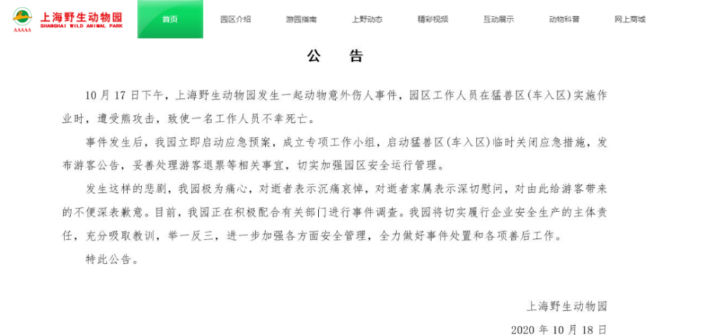 旧账 “动物园里有猛兽伤人”的新闻并非首次出现,几年间,各地的悲剧一直在重演。 2017年,宁波雅戈尔动物园,一名男性游客翻越隔离护栏,被老虎袭击,不治身亡。 2017年,青岛动物园,一名男性游客喂食笼内棕熊,被棕熊咬掉一节手指。 2016年,北京八达岭野生动物园内一名女性游客在猛兽散养区擅自下车时被虎袭击,其母赶去营救被虎撕咬致死。 2015年,河北秦皇岛野生动物园内一名女性游客在参观白虎园时自行下车,被咬伤抢救无效死亡。 2015年,成都郫县一名2岁幼童在参观动物园时将手伸入通风网格内被老虎咬伤。 分析相关事件,不难看出,此类事件多因游客不遵守园区相关规定,与动物发生本不应该存在的接触,从而酿出惨剧。 事实上,动物园内的工作人员发生的事故,也并非个案。 2016年,北京八达岭野生动物园一名园区动管经理在给大象喂食、打扫象舍时,遭大象踩踏致死。 2014年,北京八达岭野生动物园孟加拉虎园区一名巡逻员被老虎咬伤后送至医院,经抢救无效不幸身亡。 2013年,郑州动物园饲养员在喂食时死于棕熊爪下。 2012年,福建南平动物园饲养员在打开笼舍后被花豹咬死。 …… 此类事件,多因工作人员操作不当或与动物朝夕相处多时,放松了警惕,以及管理不善所致。 然而,即便对以上两类历史事件进行充分分析,也很难推测此次上海野生动物园事故发生的原因。 此次事故发生伊始,中国科学院动物研究所博士、国家动物博物馆科普策划总监张劲硕便向中国新闻周刊提出了自己的疑惑: “猛兽区散养着多种野兽,在这个区域中游客都是乘坐封闭的观光车进行游览,在这个区域中,为什么会出现人,他是去做什么的?” 网友也纷纷猜测,是饲养员?是施工人员?或是其他什么身份? 无论是哪种身份,也无法解释,他为何没有任何防护措施便出现在这样的一个空间内。 饥饿游戏 事件发生后,有网友提出自己的猜测,上海野生动物园中袭击人的熊可能是因为饥饿导致了袭击行为。而饥饿的原因是园区希望通过饥饿提高动物的活性,来满足游客参观的兴趣。 上海野生动物园熊区,游客乘坐封闭大巴参观。图/上海野生动物园官网 《博物》杂志策划总监,博物君张辰亮向中国新闻周刊表示,“无法通过相关碎片化的视频判断事发当天熊的状态,但饱腹感确实可以降低动物攻击人的可能性。” “如果从生物的角度去思考这个事件,我们与其探讨熊是不是饥饿,不如去探讨这么大数量的熊,为什么会出现在一个区域中。” 张辰亮表示,熊、老虎、狮子这样的动物,都有极强的领地意识,熊和老虎在野外是以独居的形式生活,狮子虽然是群居,但不同族群间也保持着相当大的距离。 将这些动物饲养在同一个区域中,虽然是所谓的散养,但是依然没有为它们留下足够的领地空间,这本身就是不科学的。在这样的饲养环境中,本应独居的动物变成群居,在群体中就会产生强者和弱者。 “强者通吃,弱者抢不到食,挨饿。在这样的情况下,相对弱势的一方在精神上就会更容易产生波动和受到影响。但它们的生活中本不应该面对这样的情景。” “其实相比起老虎和狮子,熊的适应能力更强,应激反应发生的可能性相对更低,无良马戏团都能够训练它们骑自行车,但这不表明他们就可以完全丧失本能和野性。” 张辰亮介绍称,我国现存的野生动物园的形式,在国外已经很少见到了,甚至是被很多业内同行所摒弃。 “野生动物园的形式看似让游客亲近了动物,和它们拉近了距离,但在这个游览过程中,游客并没有收获生命教育和应该有的生物知识。” “它们是没在笼子里,但是这里的气候、温度、环境、饮食结构、社会化系统完全和野外不同,动物们无法在这样的空间里呈现自然中的生活方式,甚至会因此改变自己的习性和行为,游客们除了看到它们追着车要吃的,其实什么也没得到。”