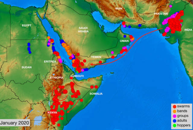 经专家研判,如果气候条件适宜,此次发生的沙漠蝗存在从巴基斯坦和印度直接侵入西藏,或者经缅甸侵入云南,或者经哈萨克斯坦侵入新疆的风险。云南、西藏、新疆等与印度、巴基斯坦、缅甸接壤的省区,要高度关注、密切监测沙漠蝗的变化动态,在可能迁飞路径上布置监测点,切实做好边境地区的沙漠蝗监控工作。