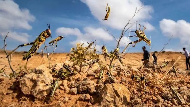 大规模蝗虫群是如何形成的? 造成此次蝗灾的元凶“沙漠蝗虫”是非洲、亚洲热带荒漠地区河谷、绿洲上的主要农业害虫,飞行能力强、食量大。那么,此次规模如此之大的蝗虫群是如何形成的呢? 据联合国粮农组织防灾预测高级官员科雷斯曼介绍,这场防灾危机要追溯到2018年的两场气旋风暴。 2018年5月,气旋风暴没库娜袭击了阿拉伯半岛南部的鲁卜哈利沙漠地带,降雨促使沙漠中出现季节性湖泊,高温湿热的环境,促进植物生长,为当地沙漠蝗虫的第一波快速繁殖创造了条件。 5个月后,另一场气旋风暴卢班袭击了附近的也门和阿曼交界处,再度为蝗虫的繁殖推波助澜。克雷斯曼估测,2018年6月至2019年3月这9个月中,当地沙漠蝗虫繁殖了三代,数量增加了8000倍。 爆炸性繁殖后,为寻找新的食物、沙漠蝗虫开始了跨越大洲的迁徙之旅。2019年1月,第1批蝗虫群蔓延至也门沙特阿拉伯的其他地区,以及伊朗的西南部。2019年夏季,蝗虫群跨越红海和亚丁湾,进入埃塞俄比亚和索马里。 2019年12月底,蝗虫群开始入境肯尼亚,到今年1月,肯尼亚面临着70年以来最严重的蝗灾,此后蝗虫群继续迁移抵达乌干达和坦桑尼亚等地。 与此同时,一部分蝗虫群经由伊朗入侵巴基斯坦和印度,除了气候方面的原因,有人指出地区局势动荡也成为此次蝗灾的帮凶,由于连年内战,也门缺乏防范蝗灾的系统和能力,导致蝗虫群不断壮大,并向其他国家迁飞。在索马里部分地区有恐怖组织控制,防灾防范措施无法有效展开。