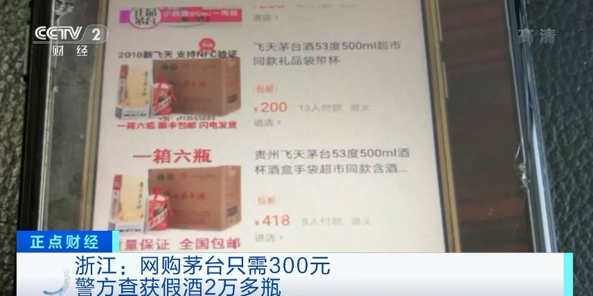 近日,浙江绍兴警方破获了一起特大生产、销售假冒“贵州茅台”等品牌白酒的案件,涉案金额达5000多万元。 浙江:网购茅台只需300元 警方查获假酒2万多瓶 2019年9月2日,绍兴警方接到报警称,辖区内一市民在网上以300元一瓶的价格买到了市场价近两千元一瓶的茅台飞天酒,怀疑是假货。 浙江省绍兴市公安局上虞区分局经侦大队民警 王力:当时售货方宣传的是由茅台副厂生产、相似度接近100%的茅台酒。实际收到后,无论是包装的质感还是喝起来酒的口感,跟茅台都有很大区别。 经过两个多月的调查摸排,警方确定了一个以陶某、曾某为首的特大制售假冒品牌白酒的产业链。 浙江省绍兴市公安局上虞区分局经侦大队民警 王力:他们主要销售三种品牌的白酒:贵州茅台、五粮液和国窖1573。 经过调查,警方确定犯罪嫌疑人窝点位于广西桂平,2019年12月29日,警方展开第一拨收网行动,在广西桂平等地抓获了四名犯罪嫌疑人,查获了假冒名牌酒以及包材、基酒、压盖机、调色色素等大量制假原材料和制假机器。 经过初步审理,在掌握了这个团伙的制假售假证据后,2020年4月21日、9月10日,警方又展开了多次集中收网行动。 浙江省绍兴市公安局上虞区分局局长 周晓国:这起案件共收缴和查证假冒的贵州茅台等各类名酒2万余瓶,涉案金额高达5000余万元。 白酒制假售假团伙 链条完整警惕性强 经过警方侦查,在这起高档白酒制假售假案件中,犯罪团伙的分工明确,流程缜密,而且警惕性非常高。据犯罪嫌疑人交代,该团伙有着明确的分工。 浙江省绍兴市公安局上虞区分局经侦大队民警 王力:一般他们从茅台镇或者是怀化直接购买原料酒,成本一公斤约30多元。 在勾兑好劣质的白酒后,犯罪嫌疑人再将酒灌装入事先购买好的假酒瓶内。 浙江省绍兴市公安局上虞区分局经侦大队民警 王力:为了在这些假酒的口感和质感上达到相应的要求,他们采取了两种形式:第一,是在自己购买的基酒的基础上,添加一定的色素,使其在颜色上看起来与真实年份的白酒颜色一样;第二,在部分白酒中添加感冒药,使得喝的人喝酒后,感觉不上头,使口感达到相似的程度。 灌装完成后,犯罪嫌疑人会利用假的包材进行包装、封箱。在制作假酒和对外运输的过程中,这伙犯罪嫌疑人很是警惕。 浙江省绍兴市公安局上虞区分局经侦大队民警 王力:发货过程中,他不与其他商家或者下家接触,直接通过网络销售,通过物流运输。不会面对面与人交流,销售过程中完全与当事人隔绝。 包装好的假冒茅台酒,在犯罪嫌疑人的销售渠道里,售价为300元到500元一瓶,一箱包装高档的生肖酒可以卖到3000元至4000元不等。 浙江省绍兴市公安局上虞区分局经侦大队民警 王力:一瓶假酒的包材成本约为50元,算上原酒成本,一瓶假酒总成本约100元。 记者了解到,除了网上销售,这伙犯罪嫌疑人制销的假茅台等品牌白酒还会销往浙江、广西、上海等二十余个省市。 浙江省绍兴市公安局上虞区分局局长 周晓国:对于那些制假售假的企业和个人,公安机关将始终保持零容忍的态度,坚决打击,严打严治,切实维护人民群众生命健康和财产安全。 日前该案已有9名犯罪嫌疑人被移送起诉。