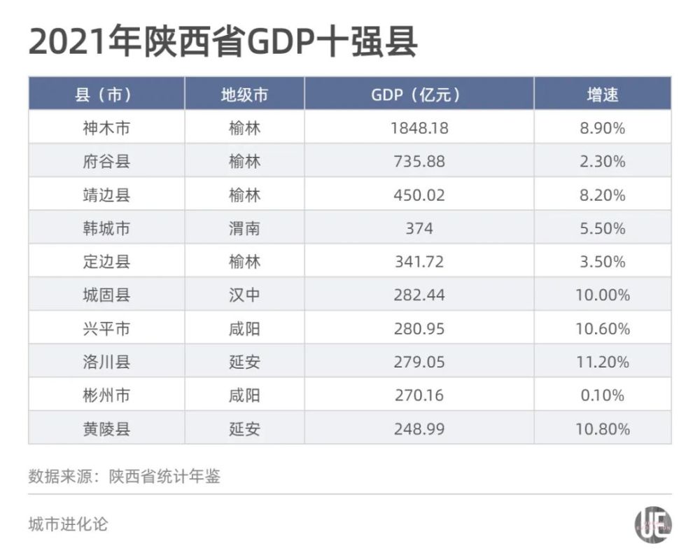 神木,再度拉高西部县域的“天花板”。 从总量看(1848.18亿元),超过“世界工厂”义乌;从增量看(554.18亿元),甚至能跟西安(668.9亿元)比肩。在全国千亿县序列中,神木也从第17位上升至第9位,取代贵州仁怀,重夺“西部第一经济强县”。 这正是头部经济强县的张力。 现如今在新型城镇化的格局下,县域经济已经不只是苏、浙的专属名词,越来越多的中西部地区开始发力县域经济。从湖北的“差距在县域,潜力在县域,关键在县域”,到河南的“推动县域经济‘成高原’”,再到陕西“全力开创县域经济高质量发展新局面”,县域经济正被提高至空前的高度。 陕西发改委此前曾披露,县域经济占陕西省79.8%的土地面积、55.2%的常住人口、40.8%的经济总量,事关发展全局。然而,伴随着头部强县上位的陕西,正面临着“头愈强,尾愈弱”的尴尬——神木一县的GDP超过省内二三四名之和,甚至佛坪县仅有其0.7%。 整体而言,县域经济仍未摆脱“农业大县、工业小县、服务业弱县”的处境,但是已然到了“总量跨越和转型升级并重的关键时期”。根据规划,预计“十四五”末,陕西县域生产总值达到1.56万亿元(2020年10706.11亿元),全国百强县达到3个(目前2个)、西部百强县达到13个(目前10个)…… 这是不小的挑战,亦是亟待跨过的门槛。