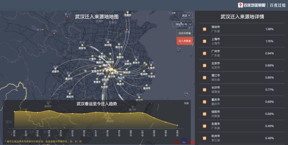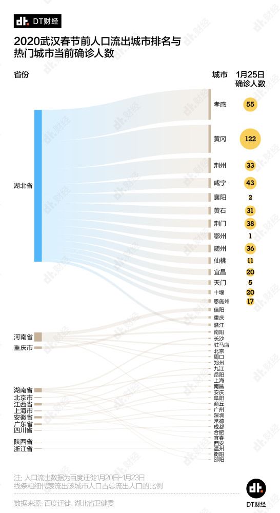 2 现在的湖北很难 接下来依然艰巨 因为有非典的经验,我们理所当然认为,这应当是一场可以快速、顺利结束的战役。 身处漩涡中央的武汉市,或者说湖北省,这次的决策层面的表现并不尽如人意,对此我们不再赘述。往回看的追责并不能解决问题,更重要的是,对接下来的困难程度有足够高的警惕和预设,也要有相对应的预案和准备。 根据对已有公开资料的整理,我们认为有两个突出的难点。即使已经有媒体反复提过,但再强调也不为过。 一是,SARS时期的北京经验可以平移,但城市情况不同,执行的效果会出现偏差。 回顾17年前的SARS,防控效果全面显现是出现在5月,我们注意到,从4月至5月,应急政策与措施主要包括三个方面: 全民动员抗击“非典”,疫情对民众全面公开; 管制公共场所、交通与人群集体活动: 确定定点医院,集中收治SARS感染者。 (图片来源:《北京市SARS流行的特征与时空传播规律》) 可以看到,在这次抗击新型冠状病毒肺炎的过程中,上述从非典中总结的有效应急政策与措施,已经全部施展。尽管大家觉得行动还是太晚了,但与非典时相比已经提前了太多,理应会起到更好的效果。 最大的变数在于,这次的重点城市不是北京,而是武汉以及湖北的其他城市。之前媒体总结的城市抗击SRAS成功三要素分别是:市民个体、制度体系和医疗专家。 也就是说,在举全国之力支援了医疗专家之外,还需要落实的是,每个市民个体的意识与责任感,还有细致到毛发的制度体系与执行力——这,才是武汉和湖北现在真正面临的难关。 二是,湖北不只一个武汉,其周边城市的防治不容小视。 下图是一个大家在这几天应该已经看过好多遍的数据:春运期间武汉的流出人口主要去向。很明显,由于武汉在湖北省的龙头地位,春运初期,人口流向最多的就是武汉周边、湖北省内的其他城市,热门流向城市最为靠前的14座城市全都来自湖北,它们依次是孝感、黄冈、荆州、咸宁…… 但在病情不断蔓延的情况下,直到1月23日,湖北省才第一次详细披露除武汉外其他城市的病例情况。 根据湖北省卫生健康委员会官网公布的最新数据,截至2020年1月25日24时,武汉确诊618例,孝感确诊55例,黄冈确诊122例,荆州确诊33例……其中黄冈在2天前还只有12例。 从媒体报道的公开信息来看,因为仓促,这些城市不仅在包括检验和医疗设备等医疗物资上缺乏准备,在应急体系与能力方面也捉襟见肘。 就在这几天,我们已经从各种媒体报道、社交平台中,看到了这些城市的艰难,尤其是站在疫情最中心的医务人员和疑似病患。从非典经验来看,各地可以伸出援手的,除了物资缺口,可能还需要有管理体系、动员能力和执行细节…… 当然,现在湖北已经利用强制手段“封省”,所以我们也有必要用数据为这作出解读。如果在当前局面下,武汉市乃至湖北省仍然可以自由出入,那么节后返程的人潮,将会更快速地把病毒带到以深圳、上海、广州、北京为主的一众大城市。 (图片说明:春运期间迁入武汉的热门城市,图片来源:百度迁徙) 但封城带来的副作用也很明显,比如物资不便、医务人员出行受阻、恐慌情绪……
