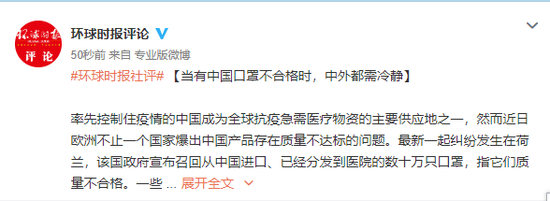 环球时报社评:当有中国口罩不合格时 中外都需冷静