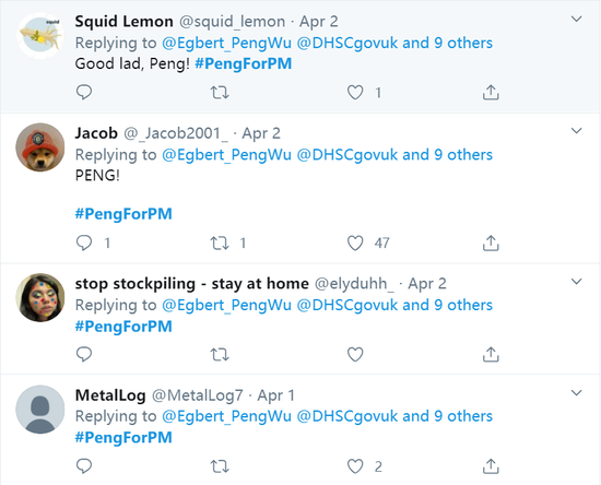 中英是国际抗疫合作的重要伙伴。习近平主席与约翰逊首相一个多月来两次通电话,共同传递了携手战胜疫情的坚定决心,也为进一步推进中英关系“黄金时代”指明了方向。中英关系本质上是互利共赢的,符合两国人民的根本利益。我相信,经过这场疫情的考验,中英互信将更加巩固,中英合作将更加深化,中英友谊将更加深厚,任何势力企图破坏中英关系都是不能得逞的!