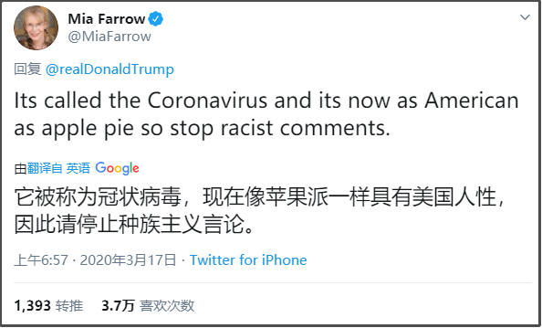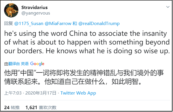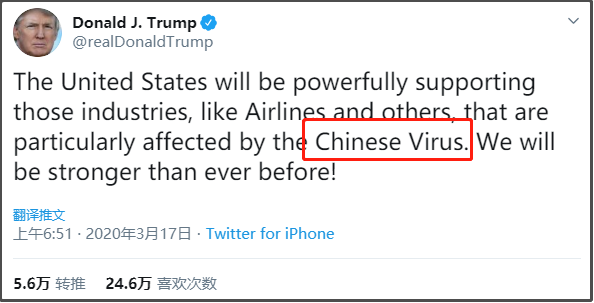 此番表态引起网友强烈反对,不少网友指责特朗普言论涉种族主义,还有网友回怼,“你是美国病毒”。