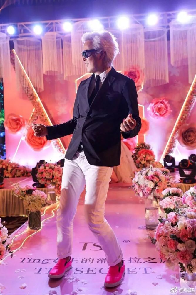 甜美可爱的小姐姐单膝跪地,接过老板端来的一碗腊八粥后,毕恭毕敬送上一句“祝您平安健康”,接着满眼笑意起身离开,让位给后面排队的同事继续行“跪拜礼”。 这样一场魔幻的公司施粥活动被拱上热搜后,镜头中白发苍苍的老板林瑞阳成了众矢之的。尽管女员工出面解释,称老板是“人生导师”“如兄如父”,“给长辈下跪是应该的、有教养的表现”,但一番表忠心发言,更引发了网友对这种扭曲品牌文化的质疑。 作为娱乐圈最具魔性的夫妻,林瑞阳和张庭两人从明星变身微商大佬后,大型迷惑现场可以说是常看常新,见怪不怪。 ·林瑞阳为了宣传品牌,不顾形象扮女装,与年轻时的英俊模样判若两人。 一个是当年的“台湾当红小生”,一个是很多人童年记忆中的“酒窝女神”,在从男人出轨、小三上位争议中走出来之后,这对情侣似乎受到命运的格外“眷顾”。 他们借助2014年创立的化妆品牌TST庭秘密(简称TST)建起微商帝国,5年内就拿下“21亿纳税大户”的战绩。企业赚钱能力动不动就是“上亿级别”:员工被鼓励5个月赚20亿、仓库一囤货就是四五十亿、品牌创立5年总销售额27亿……进入公司大家庭的员工们,可以成为老板的“干女儿”,也可以做老板娘的“干妹妹”,老板一开口就是“教你创业、带你发财”的鸡血。 如此“浮夸”的企业文化,自然招来各种不屑和鄙夷的声音,“张庭夫妇是邪教吧?”“这不就是传销吗?”“对他们真是没好感”..... 可越是被瞧不起,越是赚疯了,当drama夫妻变成“行走的摇钱树”,魔性不可挡。