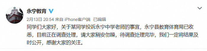 2月14日,永宁县一政府工作人员在接受九派新闻记者采访时表示,县主管县长、县教育局等部门已经在调查该事件。 调查结束后,若是老师问题会处理老师,希望能把对孩子的影响降到最低。目前马华监护人认为,马华得抑郁症是因为老师长期辱骂导致,但没有提出赔偿要求。 永宁县一工作人员表示,针对马华所反映的问题,在2月13日永宁县相关主管县长、县教育局、涉事单位等就开会讨论过,目前正在对此事件展开调查,“首先要了解一下网上反映这个情况属不属实,如果是属实(再讨论)应该怎么处置。” 该工作人表示,截止今日该事件还在调查过程中,因为涉及流量明星敏感性比较高,最终县教育局会将调查结果向社会公布,“第一,如果老师存在问题,我们会高度重视;如果消息不实,我们也会澄清,所以说现在都比较的谨慎。” 对于吴老师的处理问题该工作人员表示,不会轻易就处理。 该工作人员认为,首先调查清楚不是为了处理老师而调查,“以教育为本,调查是希望将对孩子影响降到最低。” 马华监护人也曾对调查人员透露,马华的抑郁症是因为遭受到吴老师长期辱骂造成,但马华监护人并未提出赔偿,“也可能也是不好意思。” 该工作人员认为抑郁症的诱发因素较多,是否一定是吴老师长期辱骂造成,还需继续调查。