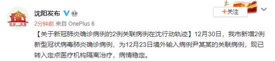 关于新冠肺炎确诊病例的2例关联病例在沈行动轨迹