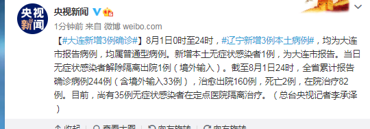 8。确诊病例76:赫某,男性,56岁,某物流公司职工,现住址:金普新区湾里街道民生园。7月30日,社区新冠肺炎病毒核酸集中筛查结果呈阳性,经大连市疾控复核阳性。经临床检查,7月31日由省专家组复核为确诊病例(普通型),目前病情稳定,在定点医院隔离治疗。对排查的密切接触者正在实施集中隔离医学观察。 该患者重点关注行动轨迹如下: 7月16日-25日,工作日7时30分步行至公司(铁山东路),17时30分下班步行返家。休息日12时左右步行至顺康大药房(山河御景店)给妻子送餐。 7月26日,9时至10时在单位加班;11时至顺康大药房。 7月27日,正常上下班。16时至山河御景小区社区新冠肺炎病毒核酸集中筛查点采样;16时30分返家。 7月28日,正常上下班。 7月29日,正常上下班。17时11分至金湾山城小区伊生鲜超市购物。 7月30日,被转运至集中隔离点实施集中医学观察。(总台央视记者李承泽)