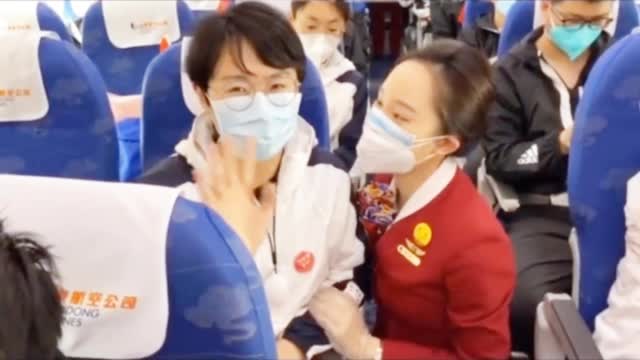 南北方言不通,为了解决语言障碍,张静静专门为一线医护们制定了“护患沟通本”,上面写着一些常用语和简易回答,例如“您稍等”,“我去通知一声”,“请您戴上口罩”等,在语言不通时,拿出护患沟通本,患者看到文字,就能理解。 十几页的“护患沟通本”用 A4纸上印装订在一起,在黄冈大别山区域医疗中心流传使用。 她在日记中记录道,当一位60多岁的患者,从其他医院转入大别山区域医疗中心,来的时候,全身上下只有一身秋衣秋裤和一双一次性拖鞋。“我赶紧尝试用黄冈方言跟他交流。” 张静静说,自己和同事找来一身衣服和一双鞋子送给老人,老人热泪盈眶。 “患者住院,没有家人陪伴,心里也难免有恐惧和害怕,跟他们用方言说话,他们能很快对我们产生信任。”十年来的工作经历,让张静静深知与患者沟通的重要性,“在隔离病房内,他们能依靠的只有我们,关心和安抚有时比治疗还重要。” 临到50余天的抗疫任务尾声,得知张静静要走,曾经住在她负责病区的一位阿姨,专程赶到酒店去看望。“今天阿姨知道我们要走,又赶来相送,道别的话不想说出口,眼泪忍了又忍,总是要分离,但我们永远是一家人,明年待到杜鹃花开,我一定再回黄冈这个家里感受春暖花开!” 3月21日,离开黄冈前,张静静收到黄冈市民送的一篮子煮好的鸡蛋,还有一幅画,“这是一群多么可爱的人,我们对黄冈的帮助如果是滴水之恩,他们回报给我们的是涌泉之数,况且,杏林门下,救死扶伤,责无旁贷。” 倒在回家之前 3月21日,张静静随山东省第一批援鄂医疗队员返回济南,按规定集中隔离医学观察14天。在这期间,她的三次核酸检测均为阴性。 4月4日17时,张静静隔离期满,即将回到阔别近70天的家中。 厄运不期而至。4月5日7时,张静静突发心脏骤停。