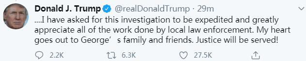 另一条收获了7335次点赞的评论,模仿大统领的语气写道: “白宫一个疯子打着高尔夫球,举行竞选集会,却忽视了新冠大流行真正两个月之久,导致美国死了92000人。特朗普的无能和疏忽应该为此负责。”