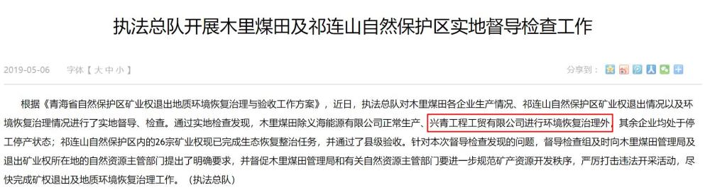顶风作案,斗法督察组? 称这家涉嫌非法采煤企业胆大妄为,并非夸张。 虽然地处偏僻,此地并非无人问津的隐秘角落。涉事矿区位于青海省天峻县,祁连山南麓腹地,紧邻祁连山自然保护区,生态敏感,关系整个河西走廊的生物多样性及气候稳定。 因此,就在2017年,由于过度开发造成的植被稀疏、冻土剥离等问题,祁连山成为生态环境破坏的典型案例,受到“史上最严厉”的问责整治。 据新华社及南方周末,问责风暴中,甘肃3名副省级、6名正厅级官员受到处分,其中4名正厅级官员被行政撤职。共有上百人因祁连山生态破坏问题被问责。 据事后探访,当时祁连山处处是关停整改的景象。矿山探采项目全面关停,各类旅游项目停业整顿,在建项目全部停。无论是街头指示牌,还是街道LED屏,保护祁连山的标语随处可见。 而此次被指非法采煤的兴青公司,据青海省自然资源厅信息,本应承担“环境恢复治理”的保护职责。 但实际情况是,据《新闻1+1》及《经济参考报》信息,虽未取得采矿许可证等手续,该公司120台机械、近300人,在聚乎更矿区一井田煤矿5号井开采作业。现场沟壑纵横、尘土漫天,开挖剥离出的地下冻土、岩石,覆盖大片草地。 为追求利益最大化,公司只开采煤层最厚的一层,被业内人士斥为“挑肥拣瘦、只吃菜心”。超过6000万吨、估值约360亿元煤炭资源,被白白扔掉。 更令人惊讶的是,在持续14年的开采中,相关监管部门、中央环保督察组多次到访,该公司却总能料事于先,应付自如。 据报道,公司经常白天迎接检查、夜间组织开采。甚至“下午2点左右,检查人员走了,下午4点,公司开始电话通知,晚上6点采煤”。表面还“打着治理的标语”,蒙混过关。 对于涉嫌违规之处,国务院发展研究中心资源与环境政策研究所副所长常纪文称,目前最需要搞清楚的,一是其手续资质是否齐全合法,二是区块属性。“如果是自然保护地,性质就严重了,就不只是存在非法盗采行为,还违反了国家自然保护区的法律法规,性质就非常恶劣了。”