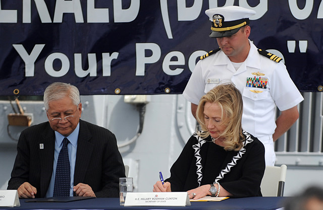 确实,根据1951年的《美菲共同防御条约》,美国有条约义务向陷入冲突的盟友提供支持,同时,美国需要在危机状态下向外界展示履行承诺的信誉,这也是“亚太再平衡”战略的重要组成部分。然而,黄岩岛并不在该协定防御的地理范围之内,从法律上讲,美国没有在黄岩岛协防菲律宾的义务。另外,基于政治考虑,美国作为一个老道的全球性力量,也不会被轻易卷入不符合自身利益的局部冲突。 所以,美国对黄岩岛的心态是矛盾的,一方面担心给予菲律宾过多支持反而会助长其危险动作,另一方面又担心菲方在中方压力之下完全退缩,损伤美国作为盟主的形象和地位,而中国力量的上升本身就被美国视为对自身力量的削弱。 因此,美国试图保持一种微妙的平衡,在外交场合多次重申《美菲共同防御条约》的有效性,也强化了在外交和军事上与菲律宾的互动。但是,美方同时也注意把握分寸,拒绝就发生冲突的假设情形做任何回应,强调“肩并肩”演习等军事动作并不针对中国。时任美国助理国务卿坎贝尔、国防部长帕内塔等高官不断表示,美国在争端问题上不持立场,无意介入黄岩岛事件。 美方的态度与菲律宾的期待有一定差距。在2012年4月30日美菲“2+2”会谈后的记者会上,菲律宾外长罗萨里奥承认,“美方已经明确表示不会介入黄岩岛这样的领土争端”。 美国的“相对中立”和保持距离的态度,动摇了菲律宾继续挑衅中国和长期对抗的决心。而且菲方进入潟湖的船体积比较小,一个多月在海上的持续折腾导致他们人困船乏,难以为继,2012年5月下旬,菲律宾的态度开始松动。
