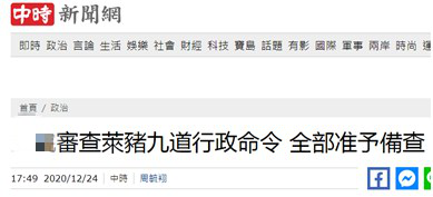 《联合报》27日称,近几个月来,蔡英文当局提名了一份绿油油的“监察委员”名单,并关掉了一个被视为眼中钉的新闻台;莱猪议题上,更是没问过民众半句意见,一场记者会说开放就开放,“这些摆在眼前的事实,恐怕都不是一句‘我是民选上台的,所以不会独裁’就能自圆其说”。 《中国时报》27日回顾民进党2016年执政后的一系列行动称,从创立“党产会”清算政敌资产、设置“促转会”扮演扑杀政敌的“东厂”、官派水利会收编民脂民膏,到修改“国安五法”、制定“反渗透法”威吓民众,“每一步,早有走向独裁的脉络”。而连任后手段变本加厉,从最初由“总统府”密件曝光的党内恶斗,到蔡英文突袭开放莱猪后“行政院”动员抹黑民间牛肉面店、告发反瘦肉精医师等,让越来越多的人敢怒不敢言。文章同时提道,当民进党祭出党纪威胁,却还冒出3名“立委”在表决莱猪时跑票,这不仅是否定行政部门的决策,对蔡投下不信任票;更严重的是,蔡当局蔑视民意、专断独裁的执政风格,连自家人都已无法忍受,“这声警钟,难道不够响亮?”