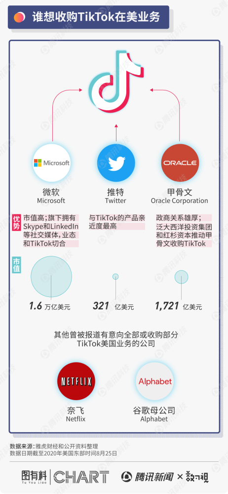腾讯科技讯 8月27日消息,知情人士周四透露,字节跳动很可能在未来48小时内与收购方达成协议,把TikTok美国等业务出售,买方尚未确定,包括微软、甲骨文等。 受此消息影响,微软股价直线拉升,涨幅扩大至3.3%,刷新历史新高。 该消息还称,因为在字节跳动与微软、甲骨文等公司商谈出售TikTok业务的过程中,并未让TikTok首席执行官凯文·梅耶尔( Kevin Mayer)参与其中,因此他选择了离职。另有消息称,梅耶尔原本计划在下周宣布出售业务的同时宣布离职,但因新闻曝光选择提前离职。 梅耶尔周四向TikTok及母公司字节跳动的员工透露了离职的消息。他在离职信中表示,“最近几周,随着政治环境急剧变化,我认真思考了公司结构变化的要求,以及这对我当初应聘的这个全球角色意味着什么。在这种情况下,我们预计很快就会有解决办法,我怀着沉重的心情告诉大家,我已经决定离开公司。”梅耶尔还表示:“我深知,因为美国政府推动出售TikTok美国业务的行动,我所签约的角色--包括在全球范围内管理TikTok--将会有很大不同。”信中称,TikTok现任美国总经理瓦妮莎·帕帕斯(Vanessa Pappas)将担任公司临时负责人。 字节跳动方面已确认TikTok首席执行官凯文·梅耶尔辞任,并表示:尊重凯文的决定,也感谢他为TikTok付出过的努力。 知情人士称,TikTok一直没有决定最终买家,仍在与微软、甲骨文和一家美国公司商讨资产出售事宜。沃尔玛一直在携手软银竞购TikTok,但它们的出价不包括云技术主干组件,这在美国政府看来是不可能的。截至目前,上述公司均对此报道未予置评。 据悉,TikTok很可能以200-300亿美元的估值出售美国、加拿大、澳大利亚和新西兰业务,但最终的成交价格尚未确定。知情人士透露,梅耶尔的离职意味着字节跳动向微软出售TikTok部分业务的交易很可能会在未来48小时内完成。 据悉,凯文·梅耶尔于今年6月1日正式加入字节跳动,担任字节跳动COO兼TikTok全球CEO,负责TikTok、Helo、音乐、游戏等业务,同时负责字节跳动全球部分职能部门(不含中国)。此前,凯文·梅耶尔在迪士尼工作过20多年,曾任公司高级执行副总裁兼首席战略官。 此前,TikTok在美国对特朗普政府提起诉讼,认为特朗普政府针对TikTok的行政令违反美国宪法。(编译/明轩) TikTok在美业务受阻始末: 8月27日晚间,知情人士透露,字节跳动很可能在未来48小时内与收购方达成协议。 8月27日,字节跳动方面确认,凯文·梅耶尔辞去TikTok CEO职务,由瓦妮莎临时接管。 8月24日,TikTok已正式起诉美国政府禁止其在美国业务的行为,表示“已经别无他法”。 8月23日,字节跳动发布声明,将于美国时间8月24日(北京时间8月25日)正式起诉特朗普政府。 8月7日下午,字节跳动发声明称,如果美国政府不能公正对待,将诉诸美国法院。 8月7日早间,美国总统特朗普签署行政命令,勒令如果字节跳动不在45天内出售TikTok,那么就将被美国封禁。 8月6日,英国金融时报称,微软公司正寻求收购TIkTok全球业务,包括TIkTok印度和欧洲。字节跳动回应称,此消息不属实。 8月3日中午,字节跳动创始人张一鸣发送公司全员信,回应了TikTok美国业务面临被CFIUS(美国外资投资委员会)强制要求出售的问题。 8月3日,针对TikTok考虑在英国设立总部的传闻,字节跳动回应称:我们的确在探讨在美国之外设立TikTok总部的可能性。 8月2日,微软称对TikTok的收购谈判仍将继续,目标在9月15日前完成。 8月2日凌晨,特朗普称,计划动用行政命令禁止TikTok在美运营,并反对微软收购。 8月1日晚,字节跳动同意剥离TikTok美国业务,微软将负责接手。 8月1日凌晨消息,福克斯商业台在推特上表示,微软正在洽谈收购TikTok在美国的业务。 7月31日,特朗普对记者表示,他很快将做出禁止TikTok在美国运营的决定。 7月23日 不少风险投资人催促字节跳动创始人张一鸣将TikTok的多数股权出售,被张一鸣拒绝。 7月21日,美国众议院通过一项法案,禁止联邦雇员在政府设备上使用中国科技企业字节跳动旗下的应用程序TikTok。 7月17日,特朗普Facebook账号投放了数则政治广告,号召美国用户签署封禁TikTok的请愿书。 7月8日,据路透社报道,美国司法部因怀疑TikTok违反儿童隐私保护协议,开启调查。 7月7日,蓬佩奥称美国要禁止TikTok等中国应用程序,西方多国表态跟风。