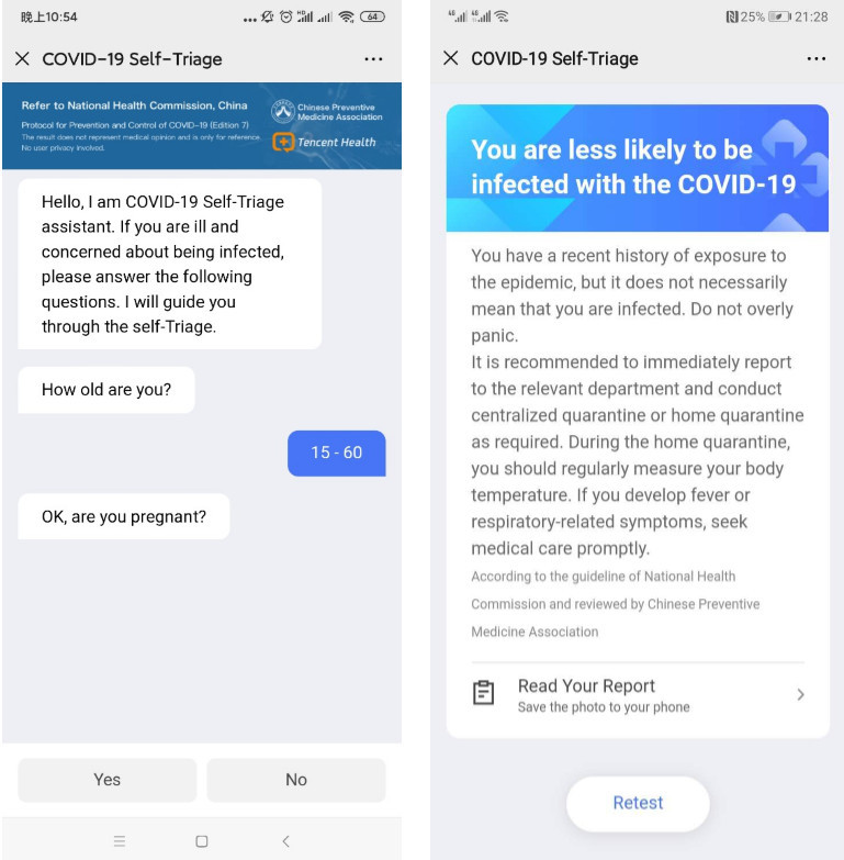 为了帮助民众正确自查新冠肺炎风险,避免恐慌和不当求医造成交叉感染风险,腾-讯健康利用人工智能技术开发了“新冠肺炎AI自查助手”(COVID-19 self-triage assistant),把专业的医学指南转换成通俗易懂操作简单的对话,帮助民众正确抗疫。这个简单实用的工具帮助了中国17个省区市的40个疾控部门、300余家医院、30余家行业ISV合作伙伴,服务了数以千万计的民众。 作为 “TH_COVID19_National-腾-讯健康新冠疫情模块国际版”Github开源项目的补充模块,此次开源的“新冠肺炎AI自查助手”,严格按照2020年3月4日发布的,国家卫建委第七版《新型冠状病毒感染的肺炎诊疗方案》(Diagnosis and Treatment Protocol for Novel Coronavirus Pneumonia)英文版,并由中华预防医学会(CPMA,Chinese Preventive Medicine Association)审核,把中国防控新冠肺炎的成功经验融入代码,帮助全球民众。 利用医学自然语言处理技术,腾-讯健康构建了呼吸道疾病问诊知识图谱,帮助遇到发热、咳嗽等症状的用户,快速自我评估病情,做出合理的就医安排。对于全球开发者而言,通过开源代码可以更简单地将医学指南更换为所在地权威机构发布的版本,为本地民众提供更具参考价值的指引。 民众可以与“新冠肺炎自查助手”进行多轮模拟对话,根据新冠肺炎流行病学接触史、发病症状、发病性质、基础疾病史等信息,参照权威医学指南判断感染新冠肺炎的可能性大小,获得对应的就诊或者隔离建议。最后,民众还可以获得分析报告,便于进一步向向医生求助时说明情况。 截至2020年3月,腾-讯共对外开源了98个项目,涵盖了云计算、大数据、AI、安全等领域。TH_COVID19_International与COVID-19 self-triage assistant的相继开源,旨在向全球开放科技能力,助力各国组织应对新冠肺炎疫情。
