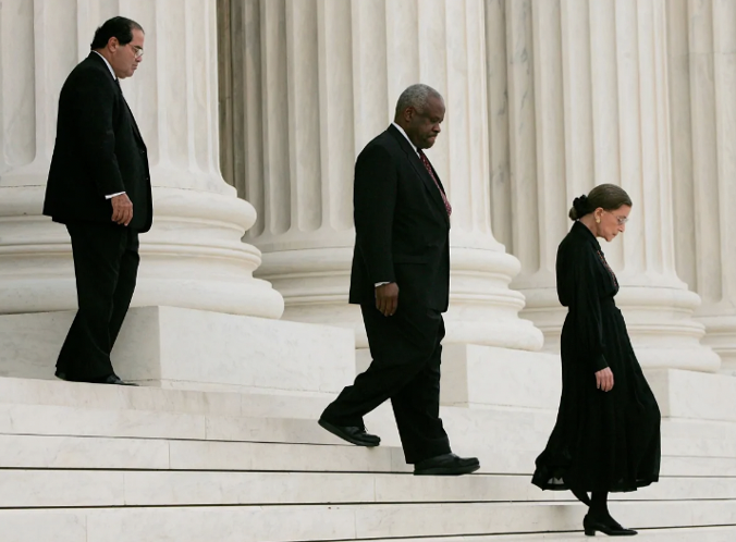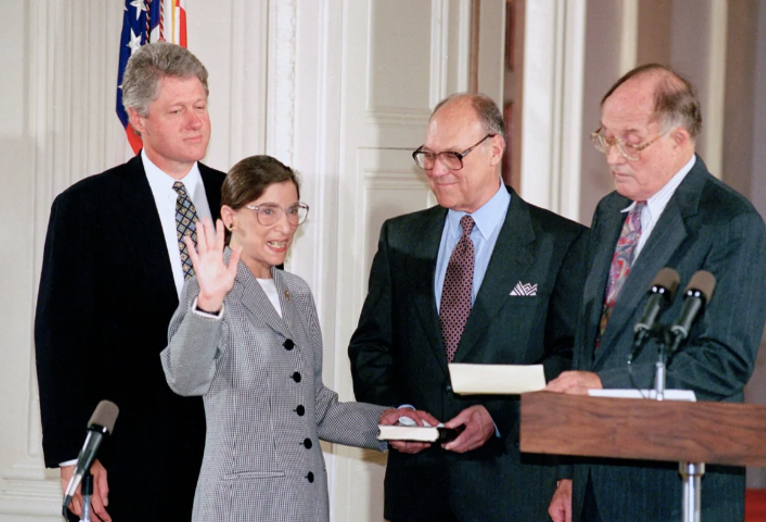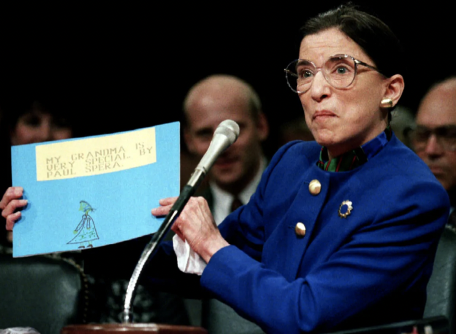 在约翰·罗伯茨取代伦奎斯特担任首席大法官、塞缪尔·阿利托接替奥康纳的席位,以及在特朗普任内,尼尔·戈萨奇和布雷特·卡瓦诺分别接替斯卡利亚和肯尼迪担任最高法院大法官后,这个分歧依然存在。 金斯伯格后来说,以5票赞成、4票反对决定了小布什2000年的总统选举结果,是最高法院上演的“激动人心的一幕”。 在法庭上,她的个人风格可能是最接近斯卡利亚的,虽然斯卡利亚是她意识形态上的对手。金斯伯格曾解释说,她把斯卡利亚有时尖锐的异议视为一种挑战,需要加以应对。她说:"我怎么才能用一种真正击倒他的方式来回答这个问题呢?"斯卡利亚于2016年去世。 金斯伯格本人在涉及堕胎、选举权和对妇女薪酬歧视的案件中也发表了强有力的反对意见。她说,有些是为了左右其他大法官的意见,还有一些是为了“对未来智慧的呼吁”,希望其能为今后的庭审提供指导。 1993年7月,金斯伯格在国会山出席任命听证会时,举着一幅自己的画像。 她在2007年说:“希望之泉永恒,当我写一份反对意见书时,我总是希望能得到第五或第六票——尽管我常常感到失望。” 注:美国联邦最高法院有九名大法官。其裁决意见可能是一致通过,如果有分歧,则以多数意见作为判决结果。 2013年,当最高法院决定删去联邦法律中确保黑人、拉丁裔和其他少数族裔选举权的关键部分时,她写下了令人难忘的意见:“就像你在暴风雨中扔掉雨伞,因为你没有被淋湿。” 最高法院发生的变化对金斯伯格的打击尤其沉重。她强烈反对最高法院在2007年的一项决定,即支持针对堕胎程序的全国性禁令,反对者称之为“部分生产堕胎法”。七年前,最高法院曾驳回一项类似的州禁令,当时奥康纳仍在担任首席大法官。金斯伯格表示,这项“令人震惊”的裁决“只能被理解为试图削弱最高法院一再宣布的一项权利(即堕胎权),而且还伴随着人们越来越理解这项权利在女性生活中的核心地位”。 注:2007年4月18号,美国联邦最高法院以5比4的微弱多数做出支持联邦政府的裁决,维护了“禁止后期堕胎法”的合法性。金斯伯格当时代表4位反对派大法官反驳说,法庭的裁决不惜以妇女的安全为代价,剥夺了妇女的选择权。
