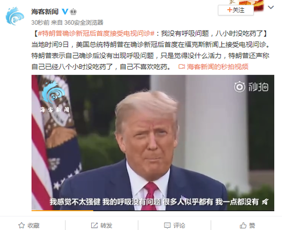 原标题:注意特朗普这个指标,他可能一度达到重症标准 [文/观察者网 赵挪亚]虽然感染了新冠病毒的美国总统特朗普已经返回白宫,并且还称自己“感觉很好”,但他住院期间语焉不详的信息发布,让外界对他病情的猜测仍在继续。 美国消费者新闻与商业频道(CNBC)10月4日即提到一个细节:白宫医生肖恩·康利(Sean Conley)当天提到,特朗普的血氧饱和度曾一度下降到约93%左右。 无论是世卫组织(WHO)还是中国卫健委的重症诊断标准中,93%的血氧饱和度都是一个微妙的指标——若低于这一数值,便表明患者是新冠肺炎的重症患者。 除了这个指标以外,特朗普还使用了抗体混合物、瑞德西韦以及地塞米松三种药物的联合治疗方案。根据世卫组织的最新指南,同样只建议给重症或趋于重症化的新冠患者使用地塞米松。 但仅仅用了3天,特朗普便匆匆返回白宫。相较之下,比他年轻了近20岁的英国首相鲍里斯·约翰逊,感染病毒后花了近1个月时间才恢复。 返回白宫后,特朗普就开始频频在推特上放话,为11月的大选造势。但白宫内的混乱还在继续,越来越多特朗普身边的人确诊感染新冠病毒,白宫内的工作人员,部分穿上了全套防护服。《纽约时报》甚至形容,白宫内的部分地区是“危险地带”。 特朗普血氧饱和度下降至93%,为重症指标 CNBC援引白宫医生康利4日的发言称,特朗普在感染新冠病毒期间,曾两度出现血氧饱和度下降的情况,最低一度下降到约93%,但在接受“氧气补充”治疗以后,特朗普的血氧饱和度回升。 他表示,特朗普从10月1日晚到2日上午,状态良好,只有轻微症状。但到2日晚些时候,特朗普开始发高烧,他的血氧饱和度下降到了94%以下。相较而言,一般健康成年人的血氧水平高于95%。“考虑到这些进展,我担心(总统)病情可能会迅速恶化。” 然后,特朗普接受了补充氧气治疗,“大约一分钟后”,他的血氧水平又回到了95%以上。康利补充说,特朗普在2日接受了大约一个小时的氧气补充。 3日,特朗普的血氧饱和度下降到约93%。但白宫医生并未透露,他们是否在当天给予过特朗普“补充氧气”治疗。医生随后对特朗普的身体进行了监控,称他的血氧含量回升。康利4日表示,特朗普当天的血氧水平为98%。 而93%的血氧饱和度,是新冠肺炎重症的指标之一。根据中国卫健委发布的新冠肺炎诊疗方案(第七版),成人只要在静息状态下,指氧饱和度小于等于93%,即可被认作重症患者。