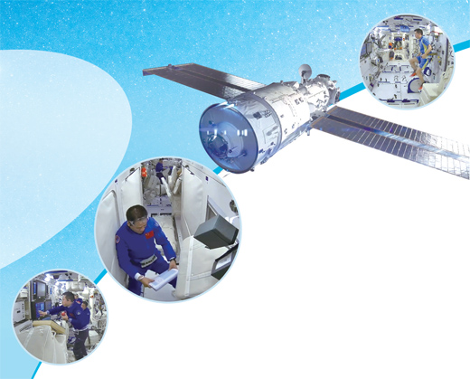 吃 饭 主食、副食、甜点,120多种食品荤素搭配、营养均衡 神舟十二号的第一次空间站出舱活动足足进行了7小时,如此高强度的作业对航天员体力是一个巨大的消耗,用美味大餐恢复体力是个好办法。随着载人航天的不断发展,航天员在空间站的食谱也越来越丰富,中国空间站的食物品种达上百种,荤素搭配、营养均衡。 此次神舟十二号载人飞行任务为航天员配备了120多种航天食品,包含主食、副食、调味品、甜点。例如有藜麦桂花粥、椰蓉面包、酱萝卜、什锦炒饭、尖椒土豆、辣味金枪鱼、香卤鸡胗等菜品,品种丰富、口感良好。每次飞行任务前,都会有专业科研人员为航天员精心调配,关键就是要做到营养均衡。 这是其中一天的太空菜单:早餐有粥、面包和酱萝卜;午餐有荤有素,有太空香粽,还有一道复水汤菜菘菜牛肉汤,复水食品是加水复原后就可以食用的食品;晚餐也很丰富,有鸡有鱼。除了正餐,还有巧克力、曲奇饼干、什锦罐头等多种多样的佐餐食品。空间站的太空厨房里还配备了食品加热装置,让航天员在太空也能吃上热乎饭。 不仅如此,为了让航天员们都能吃到自己喜欢的食物,科研人员还根据航天员的个人口味,在符合健康营养要求的基础上对太空食谱进行个性化订制。 此外,航天员在轨的饮食也要根据不同的飞行阶段作相应调整。刚入轨时会选择粥和一些清淡的食品,有助于航天员补充体液,也更利于消化。