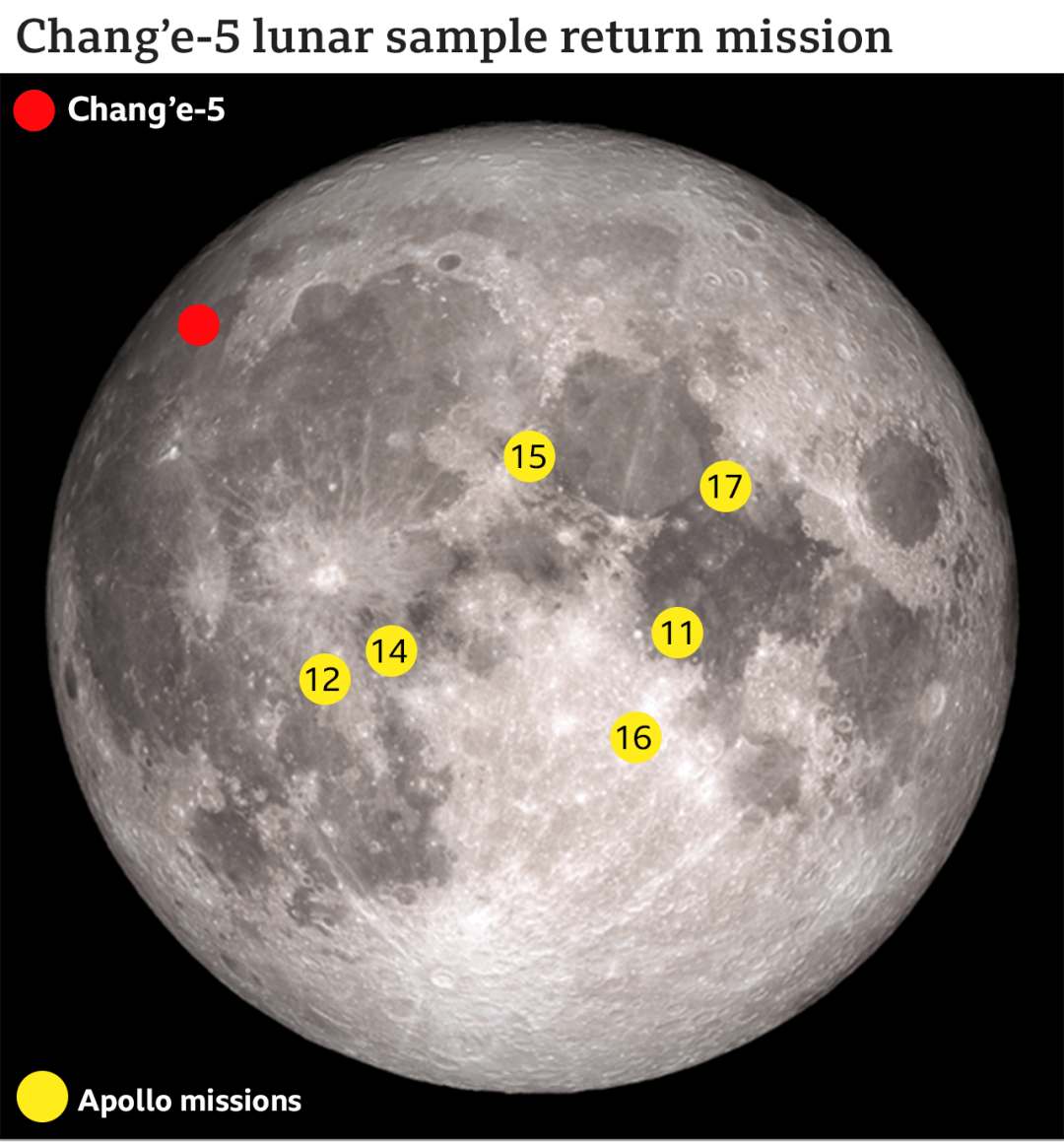 The landing sites of Chang‘e-5 and previous lunar landing missions by the U.S。 /NASA 为什么选择这里的“土特产”? Why collect samples from Mons Rümker? 上世纪六七十年代,美国开展了6次登月任务,先后带回了约382千克月球岩石和土壤样品;前苏联的月球探测器进行了3次月球采样,共采集到约300克样品。 美国和前苏联采集的月球样品大多形成于30亿至40亿年前。科学家对这些月球样品研究后发现,月球上的火山活动在35亿年前达到顶峰,然后减弱并停止。 In the late 1960s and 1970s, the United States brought back to Earth 382 kilograms of lunar material from six moon-landing missions, while the former Soviet Union retrieved about 300 grams over three missions。 All those samples are very old – 3 to 4 billion years in age。 Analysis of the samples suggests that volcanic activity on the moon peaked 3.5 billion years ago, then faded away and stopped。 但通过观测月球表面的其他特征,科学家发现月球某些区域可能含有地质年龄较短的火山熔岩,这又说明月球上的火山活动可能停止得相对较晚。 嫦娥五号着陆的吕姆克山附近,就可能存在形成于13亿年前的玄武岩,这在月球表面属于“非常年轻”的玄武岩。对这些岩石进行采样并研究其形成时间,可以确认该区域火山活动的起始时间,为科学家研究月球火山活动和月球演化历史提供线索。 But Mons Rümker, where Chang‘e-5 collected its sample, may have erupted as recently as about 1.3 billion years ago and contain “the youngest mare basalt on the moon,” according to scientists。 Such “young” rocks from the moon have never yet been sampled or studied。 If Chang‘e-5’s samples confirm that the moon was still active during this time, it could fill an important gap in scientists‘ understanding of the moon’s volcanic activity, and rewrite the history of the moon。 Studying the rocks‘ composition could also clarify what fueled this thermal activity for so long。 “The landing site was extremely wisely picked,” Harald Hiesinger, a geologist at the University of Münster in Germany, told Nature。 Brett Denevi, a planetary geologist at Johns Hopkins University in the U.S。 and science chair of a NASA lunar analysis group, said China picked a spot where it could have a big scientific impact。 “Understanding the age of those samples and all of the Solar System–wide implications that flow from that result will be a big leap forward for planetary science,” she was quoted as saying in Science magazine。