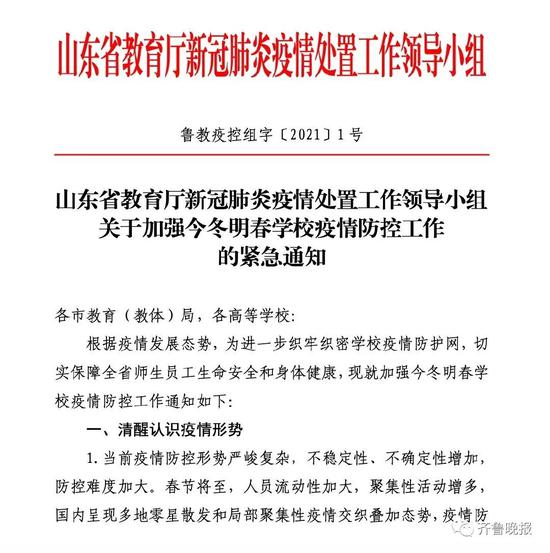 原标题:山东省教育厅通知:鼓励学校适当提前放假 近日,山东省教育厅发布《关于加强今冬明春学校疫情防控工作的紧急通知》对放假和学校疫情防控等作了具体要求。