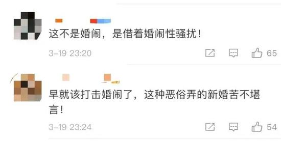 诚然,在中国社会,闹婚礼具有一些习俗属性,但恶俗的婚闹现象绝不能用习俗或者玩笑去解释。任何“热闹”应当有“度”,而“度”的底线,就是公序良俗,就是道德法律。 在李璇看来,婚闹恶俗与否,关键看是否违背新郎、新娘或其他参与者的个人意愿。“若违背了意愿,强行触碰身体,限制人身自由或有言语侮辱、性骚扰等行为,情节轻微的可能构成民事侵权行为;违反治安处罚法的,可能会被处以行政处罚;情节严重或有其他涉及刑事法律相关规定的情形的,甚至可能构成犯罪。” 考虑到当事人会考虑人情世故,不愿主动报警,李璇表示,根据我国相关的治安管理及刑事法律规定,有关单位可以在发现违法行为时主动干预。 “即使婚礼参与者无人报警,也一样可以由周边群众报警、民警主动干预等形式,启动相应的追责程序。”李璇说,山东邹平规定打击恶俗婚闹,旨在倡导文明婚礼,抵制恶俗婚闹行为,并对较为典型的恶俗婚闹行为予以禁止,通过警示法律后果的方式,来教育、引导群众,具有积极意义。