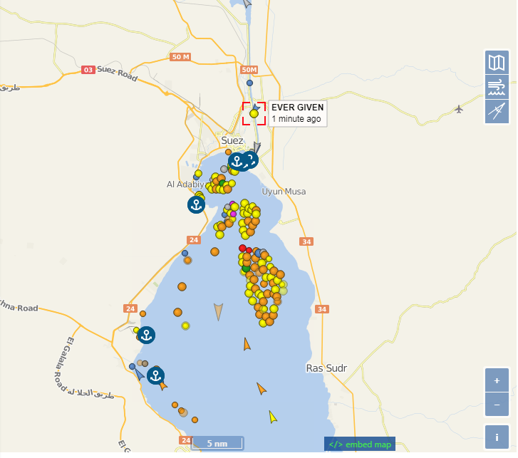 全球贸易与物流信息提供商JOC的欧洲高级编辑格雷格·诺勒(Greg Knowler)在接受《每日经济新闻》记者采访时表示,2020年,因第二季度航运受新冠疫情影响,亚洲至欧洲和地中海的船只运输了近1600万个20英尺集装箱(标准箱),比2019年的1660万箱略有下降,其中绝大多数货物是通过苏伊士运河运输的。 雷格·诺勒告诉记者,预计“长赐号”至少需要两天时间才能脱离搁浅状况。集装箱船搁浅给通过运河的常规航行造成干扰,导致从红海向北和地中海向南的船只扎堆。“所以即使苏伊士运河的通航只推迟两天,也将进一步加剧供应链中断,减缓运往欧洲各地企业的货运。” 在“长赐号”搁浅之前,历史上已经有数次货轮搁浅在苏伊士运河的事件。即使在2015年苏伊士运河完成了一项80亿美元的运河扩建工程之后,船只搁浅导致航道堵塞的事件也时有发生。 2020年11月,赫伯罗特船舶旗下的Al-Muraykh号在运河上搁浅五个多小时;2017年10月,东方海外的超大型集装箱船OOCL Japan号曾因机械故障而搁浅了数小时,之后在拖车帮助下重新脱浅并通过运河;2016年,马士基航运的9962TEU集装箱船Maersk Shams号也曾短暂搁浅;最严重的一次事故发生在2004年,油船Tropic Brilliance号在搁浅后,苏伊士运河被迫关闭了三天,最终在将25000吨石油抽出后,该船才终于脱困。 对于当前被堵住去路的航运公司来说,它们现在有一个选择是改走非洲和好望角的航线,但这将增加3000多海里,从亚洲到欧洲的过境时间延长一周。船只还必须加速航行以求赶上它们的周时间表,增加2节航速航行5天将额外燃烧1000吨燃料。