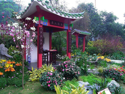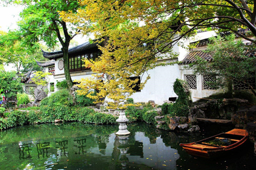 榴花火红心事,衬翠柳风情,点缀长堤。