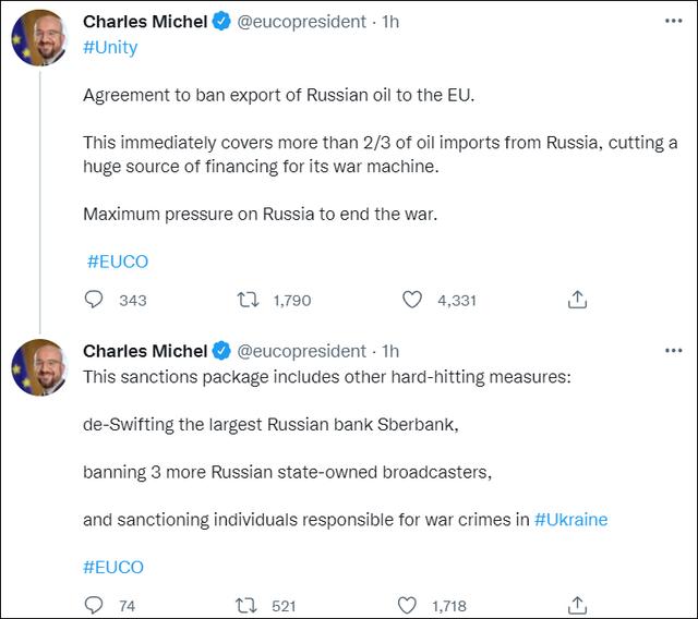[时事新闻] 欧盟就对俄“禁油令”达成共识 年底前将削减90%进口 |