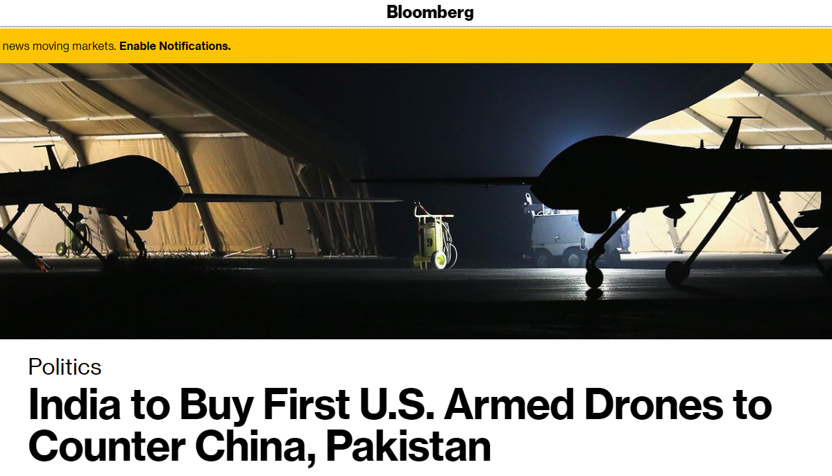 印度重金引进30架无人机单价1亿美元 美媒:对抗中巴