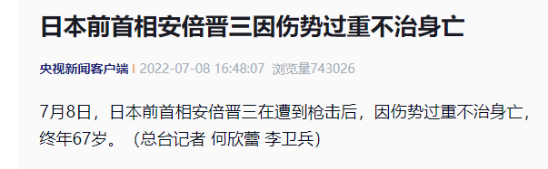 [时事新闻] 日媒:日前首相安倍在演讲中倒下 现场疑似听到枪声 |