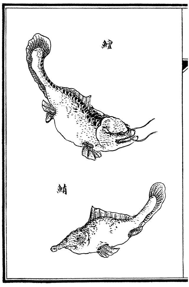 在周朝的《诗经》里,也有鲔的存在。除了《卫风·硕人》的“鳣鲔发发”和“《小雅·四月》的“匪鳣匪鲔”之外,最著名的一处当属《周颂·潜》: 猗与漆沮、潜有多鱼、有鳣有鲔、鲦鲿鰋鲤。以享以祀、以介景福。 大意是说:美好的漆水和沮水里,有多种鱼类在栖息。既有鳣鱼和鲔鱼,还有鲦(tiáo)鲿(cháng)和鰋(yǎn)鲤。以它们来祭祀祖先,求得福祉永久绵延。 除《诗经》外,《礼记·月令》里也有“荐鲔于寝庙”的记载。根据《毛诗序》里的解释,冬天各种鱼都可以献,但春天只祭献鲔。至于为什么长江流域的鲔会跑到黄河流域去,从三国东吴的薛综、西晋的陆机到北魏写《水经注》的郦道元,都一致认为鲔是从长江的支流一路北上,最终抵达洛阳龙门。清代学者段玉裁在为《说文解字》作注时认为言之成理,“不然鲔出江中,何以西周能荐鲔也?” 可见在河流丰沛、水系发达、南水自然北调的先秦时期,在洛阳目睹鲟鱼实在不算大惊小怪。 汉朝以后:鱏即是鲟 西汉贾谊的《吊屈原文》里,有“横江湖之鳣鱏兮,固将制于蚁蝼”的句子。这么大的鱏鱼,极大可能只会是长江里的白鲟。 而到了东汉,许慎所著的《说文解字》里只有“鲔”字、“鱏”字而无“鲟”字。鲟,只是“鱏”后来才有的写法。 西晋时,名臣张华作诗“玄鹤降浮云,鱏鱼跃中河”,此时已经习惯用“鱏”不用“鲔”,今天的鲔鱼也再没有长鼻子。南朝时庾信的父亲庾肩吾赋诗“海鸥时出没,江鱏乍噞喁”,可见鲟鱼多半已经只在长江流域常见。唐代沈仲昌写“江南仲秋天,鱏鼻大如船”,宋代王安石写“白沙眠騄骥,清浪浴鱏鱼”……南北朝以来的一千多年里,鲟鱼都在诗人的眼里翻腾出没。