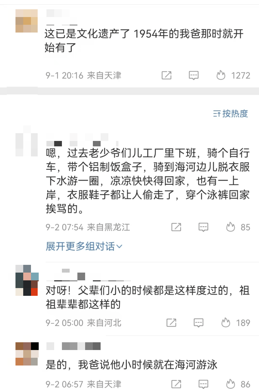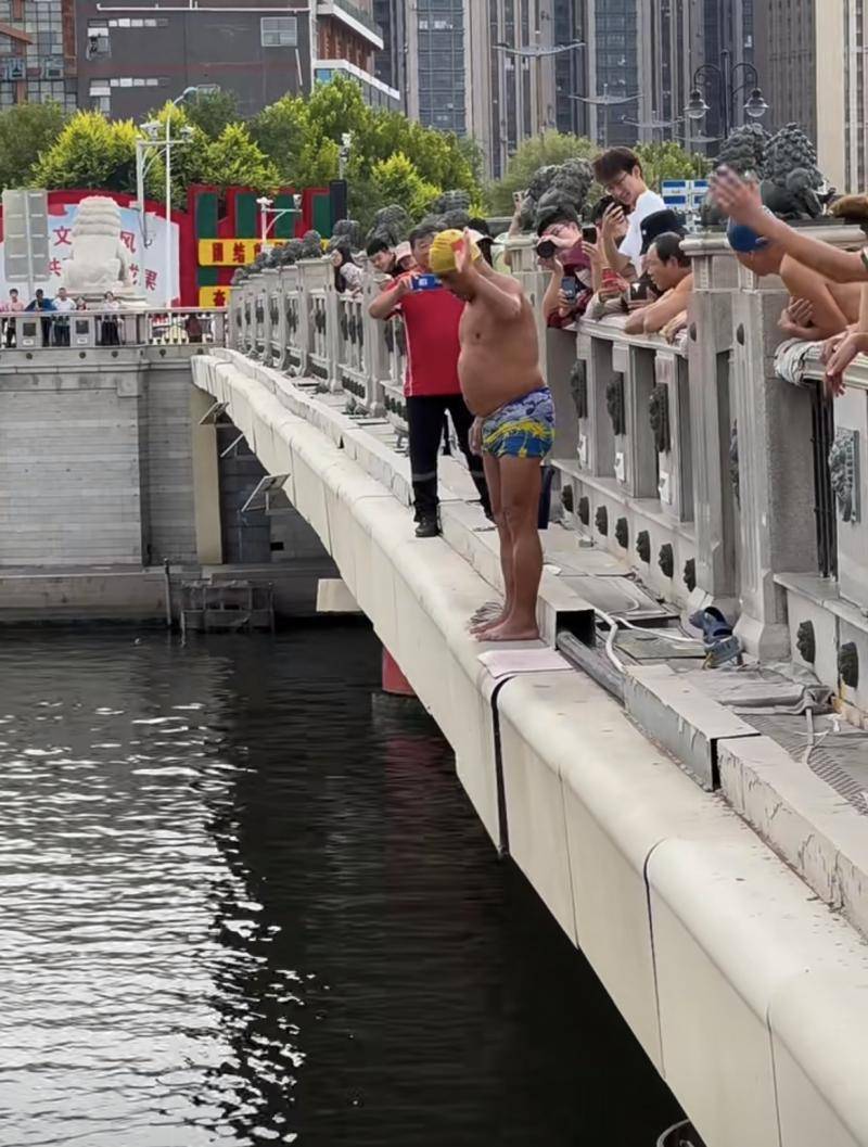 近日,天津大爷在海河跳水的多段短视频在网上走红。视频中,有的大爷跳水前有准备动作,还向现场观众招手致意,姿势还很标准。有网友调侃,大爷跳水已经成了天津民间“6A级景点”,还有网友笑称“天津有了自己的郭晶晶”。 在天津,海河自西向东贯穿天津市区,是天津重要的交通运输场所、工农业生产水源和生态旅游景观带。大爷大妈跳水的河段主要在核心城区,集中在狮子林桥和北安桥。 跳水大爷中的一员许先生告诉北青报记者,在海河有很多的游泳跳水队,到狮子林桥跳水的比较多,他所加入的狮子林桥跳水队就是其中一个业余跳水队。“很多老大爷从小就在海河跳水游泳,也有一些是退休之后才学的。跳水队里目前年纪最大的已经七八十岁了,年轻的比较少。” 另外一位跳水大爷李先生告诉北青报记者,8月25日,他在狮子林桥跳水,现场跳水者约有20人,相对而言是人数比较多的一天,桥上、岸边也挤满了围观者。“跳水时,围观游客会给我们加油、打招呼,我也会向他们示意。有时会有人自发主持、解说,我们会有秩序地排队,一般都是准备好的先跳,有时也会互相谦让,或者年纪小的让年纪大的,但90%以上的跳水者年龄都在60岁以上。现场的氛围很快乐。” 李先生说,他今年67岁,退休前是一名园林工人,从年轻时就开始在水上公园跳水,至今已经30年了,近4年,他才到狮子林桥跳水。“从狮子林桥的栏杆往下跳,距离水面高度约7.5米,水深六七米,跳下去不会触底,但有时候伤到也正常。我一开始在水上公园跳水,那边高度比较低,我基本功打得比较扎实,这么多年跳水一直是零失误。”