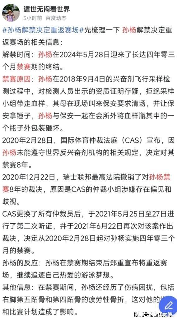[时事新闻] 官方确认:孙杨复出!月底亮相合肥参赛 |