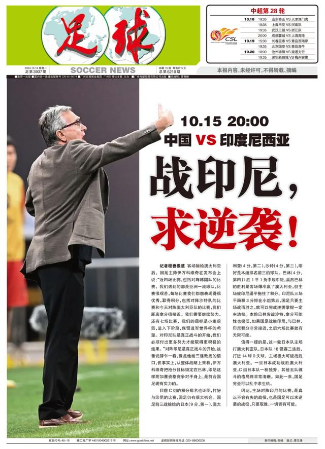 国足现有名单人员能力有限,还受到伤病严重影响。最需要进球的锋线阿兰、武磊都有伤在身,只能补招攻击中场曹永竞保持活力。之前三场比赛,伊万在熟悉国足球员真实能力、推动战术执行和临场应变等方面“交足学费”,到第四场对印尼真正的“战斗开始”,伊万和国足上下应通过更全面深刻的总结,做出更有针对性的选人和战术安排,才能看到获胜希望。 客观而言,近两场国足在绝对被动情况下,进攻上还是展现出一定成效。连续进球是结果,过程是针对不同对手做出不同进攻战术。对印尼的关键比赛,对手也认为这是必胜之战,必然会将边后卫前压形成与澳大利亚相似的三后卫体系,通过增加前场压迫和边路突破,以及定位球寻找破门机会。在费南多伤退、武磊和阿兰回归国足的情况下,如何利用好在与澳大利亚一战中表现不错的张玉宁的支点作用,形成更好进攻方式,值得伊万花心思。 以往伊万多次将球员安排在不擅长的战术位置,对澳大利亚改变位置出战的胡荷韬下半场失误导致失球,就是最新证明。印尼队边路进攻是主要手段,国足对澳大利亚时就暴露无遗的边后卫偏弱问题如何解决?边后卫如何“避短”,很可能将是这场比赛的胜负手。同时前三场每战必有失球的定位球防守也需要弥补漏洞,战印尼,在精准盯人和防第二落点方面需要看到有针对性改善。