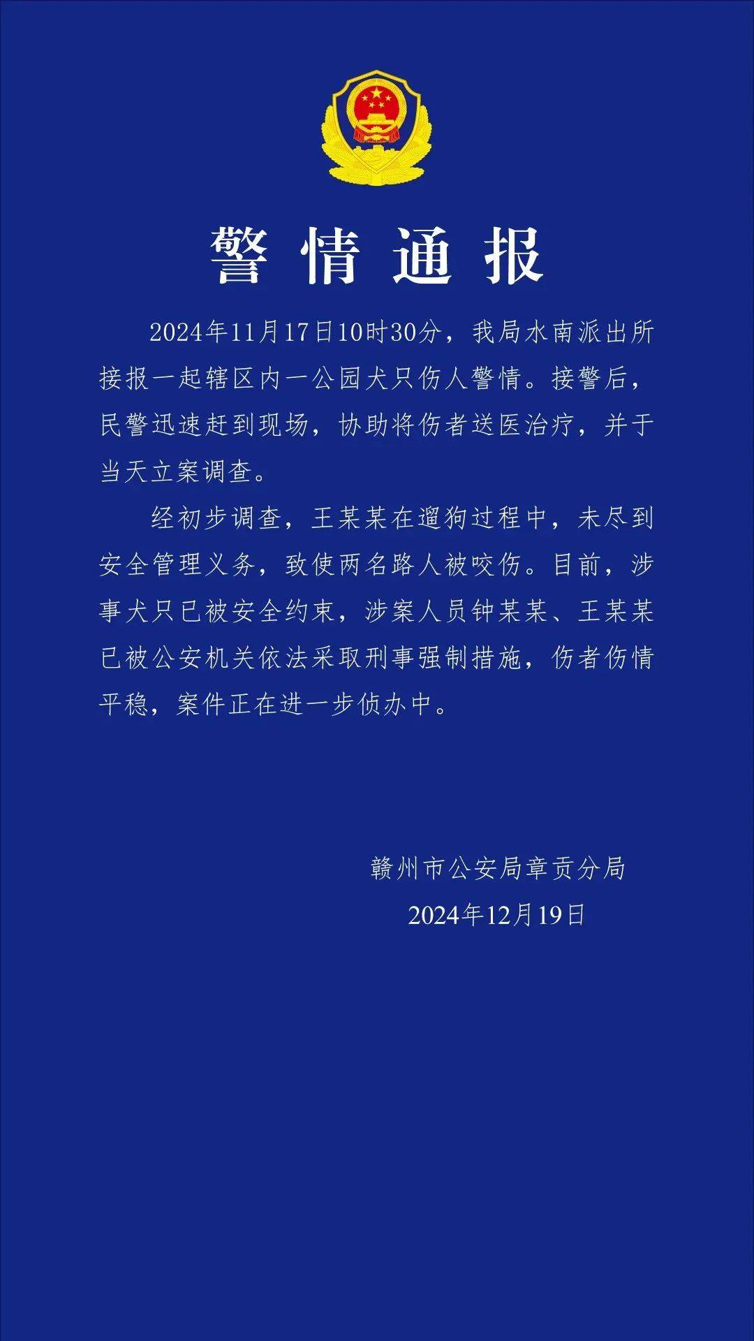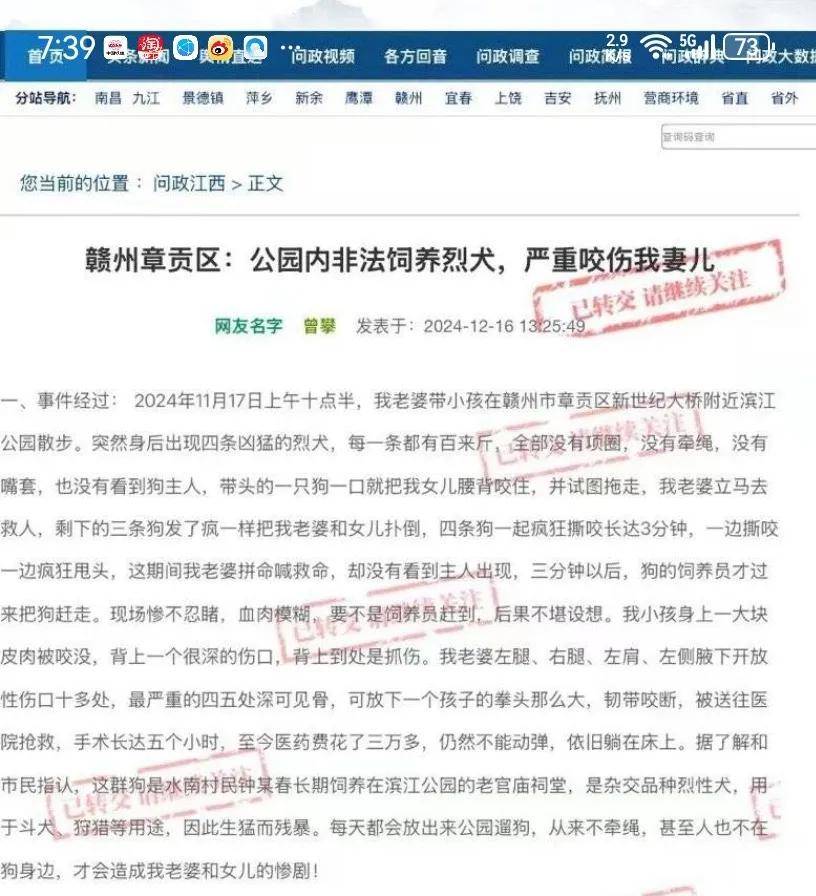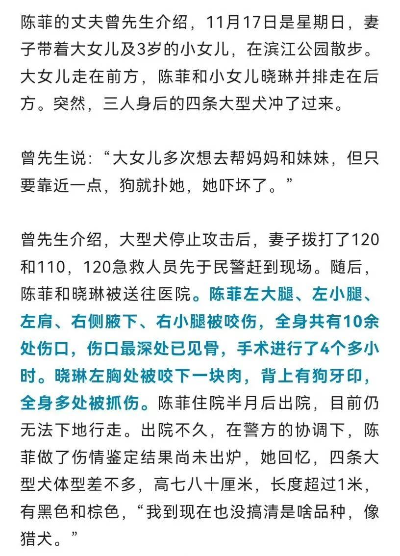 治犬重在治人 让悲剧少一些,再少一些 近年来,类似的恶犬伤人事件时有发生,其中不乏有人受到严重伤害,其惨状令人倍感心痛。这一起起悲剧,给整个社会带来的是深刻反思和警示——治犬重在治人。 狗的问题,归根结底是人的问题。正是部分犬主人未能履行依法依规养犬责任,或疏于看护、遛狗不拴绳,或随意丢弃致流浪犬无人看管,且在事故发生后极力洗脱责任,致使恶犬伤人事件频发。 犬类管理必须引起重视,此类恶犬伤人的悲剧绝不能再重演!目前,全国多地发布了犬只管理规定,其中明确指出,“遛狗不系绳”可以罚款、没收其犬、要求5年内不得再养,比如杭州最高可罚1000元;武汉会视情况,将养宠业主纳入严重失信名单。 今年2月5日,最高人民法院发布饲养动物致人损害典型案例,呼吁文明养犬、依规养犬,强化养犬有责、养犬负责意识。这些案例判决明确,禁止饲养的大型犬伤人,无论受害人有无过错,犬主均应承担全部责任;犬只追逐路人致其受惊吓摔伤,“无接触式伤害”,饲养人也担责。 《民法典》则规定,饲养的动物致人损害的,由动物的饲养人或管理人承担侵权责任。 此外,从刑事责任层面上讲,狗咬人是可以“入刑”的,因“狗咬人”导致狗主人触犯“过失致人死亡罪”、“以危险方法危害公共安全罪”等均有案例。其中,是否拴绳是法院认定能否入罪的重要依据。 比如呼和浩特四岁男童被撕咬致死案件,犬主人被判处有期徒刑3年,缓期4年执行。这是全国首例因“狗咬人”而判处动物饲养人刑罚的案件。 据卫健委不完全统计,我国每年大约有4000万人被猫狗咬伤,每年被动物致伤进行狂犬病预防处置的人数超过1000万。 显然,面对犬伤人事件屡禁不止的现实问题,对饲养犬只提出更高的要求、做更充分的约束,才能从源头上遏制养犬乱象,杜绝安全风险,确保“牵狗绳”牢牢握在人手里,这既是抓好“文明绳”,也是握牢“安全绳”。