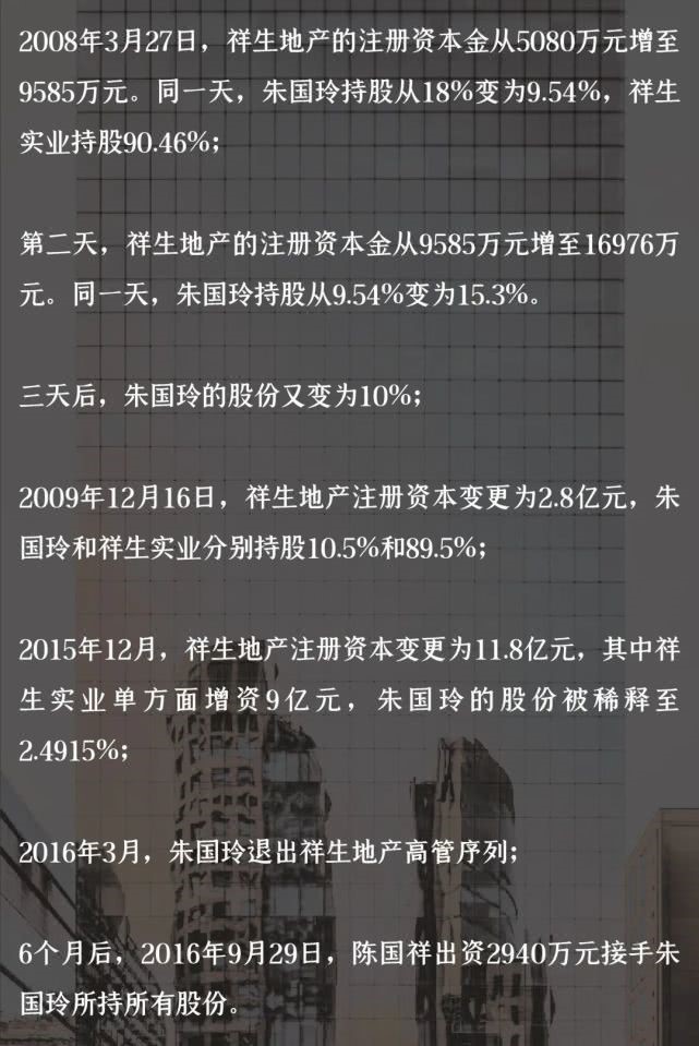 可这一波棚改红利的结束,已是大概率的明日黄花。 新一轮的棚户区改造计划,明确要在2020年,将全国范围内的棚户区全部完成改造。换言之,对所有重仓三四线的房企来说,遍地捡钱的好日子一去不复返了。 新的市场形势将更考验房企的市场判断与资金承压能力。而业界的一个共识是,一旦拿错三四线城市地块,可能万劫不复。 对于祥生来说,这不是一个好消息。影响已经部分显现出来了。据媒体报道,2019年,祥生地产给自己定的销售目标则是1300亿,而公司方面表示,结合行业环境及自身发展,2019年祥生已做了新的战略调整,1+1+X战略升级落地,但却并未设置硬性的业绩目标。 可理想丰满,现实骨感。 据克而瑞地产研究中心发布的《2019年中国房地产企业销售T0P200排行榜》显示,祥生地产以1159.3亿的销售金额,排名第28位,与网传的1300业绩目标尚有距离。 在克而瑞地产研究中心最新发布的《2020年1—2月中国房地产企业销售TOP100排行榜》里,祥生地产以78.1亿的成绩,排名第28位。 不进则退,何况逆水。 规模增速放缓的另一面,是整个房地产市场的融资环境日趋恶劣。 去年7月以来,融资监管收紧之严,让所有房企心里冰凉。境内外发债、信托机构、ABS等融资手段纷纷受限,尤其是一度被视作融资主流渠道的信托资金,更成为金融监管重点中的焦点。直至今年,哪怕是大疫来临,政策层面对于房企融资的监管依然未有任何明显松动,中央“房住不炒”的决心从未动摇。 这对于非上市企业祥生地产来说,同样不是一个好消息。 作为非上市房企,外界很难知晓祥生地产详细的财务情况和融资手段,从公开媒体报道来看,祥生地产的主要融资渠道为信托、银行及私募等融资渠道。 祥生地产前总裁赵红卫曾对媒体表示:“很大一部分采用银行、信托、私募形式,随着公司发展,祥生运用发债、ABS等模式融资,进一步扩大融资渠道,降低融资成本。” 据媒体报道,根据其发行融资产品的相关资料推算,祥生地产近两年的资产负债率均接近90%,2018年资产负债率为89.3%,2017年为86.08%,均高于行业平均水平。从其信托融资渠道来看,利率在7.8%至9.7%之间,也高于行业平均成本。 年景好的时候,凭借快速去化下的高周转与快回款,祥生可以拥有相对充足的现金流,来维持黑马突进之态,那年景不好的时候呢? 同样信奉高周转,同样是业界黑马,同是浙系房企的中梁,已经给出了清晰无比的选择——上市。 一个被普遍接受的业界共识是,上市对于房企融资的成功率大有裨益,对融资成本的降低有着直接而明显的作用。同时,如果在非境内上市,也可以拥有更灵活的融资渠道,而免除国内公司债融资渠道随时关闭之困。 因此,市场人士判断,上市是祥生拓宽融资渠道、降低融资成本,也是祥生积极应对行业深度调整、着眼长远发展的不二之选。 特别是去年10月,被称为“上市熟手”的谈铭恒正式入职祥生地产,更是引发业界对其祥生上市的热议。毕竟,谈铭恒曾帮助景瑞地产、正荣地产成功赴港上市。 祥生的业务版图有5块,分别是祥生地产、祥生小镇、祥生建设、祥生物业和祥生酒店。其中,具备上市条件的是祥生地产和祥生物业,让谁吹响号角,率先上市呢? 69岁的祥生老板陈国祥,需要尽快做出一个选择。 与陈国祥同时代的歌手齐秦,有首老歌是这样唱的——选好走的路,比较容易被祝福。 就目前形势来看,与地产公司相比,从行业稳定性与抗经济周期来讲,处于风口的物业公司更受欢迎,更容易通过IPO审批,特别是受到港股市场的青睐。 近年来,内地物业管理公司扎堆在港交所上市。仅2019年一年,就有包括和泓服务、时代邻里、保利物业、奥园健康、蓝光嘉宝服务、滨江服务、银城生活服务、鑫苑服务等8家公司成功上市,掀起了一股赴港上市热潮。 特别是最近新冠疫情期间,物业行业公司的光环愈加耀眼,走出了一波行情,前2个月物业股平均涨幅接近20%,堪称凄风冷雨里的一抹亮色。 陈国祥如何“2选1”,外界不得而知。可以看到的一个强烈信息号是——祥生物业猛然增资。 2020年1月11日,浙江祥生物业服务有限公司(以下简称祥生物业)的注册资本发生巨大变化,从1000万元增至5000万元。 摆在陈国祥面前的,是梳理祥生的“家天下”,在自己、妻子和一双儿女之间,作出权衡选择。对任何一家谋求基业长青的家族企业来说,这是一道绕不开的必考题。 据媒体公开报道,陈国祥与妻子朱国玲育有一儿一女,儿子陈弘倪,女儿陈雪宜。2019年,陈弘倪上任祥生地产集团总裁,陈雪宜则负责资金管理中心和财务管理中心。这样一来,2020年是陈氏兄妹接班后的第一个完整年份。