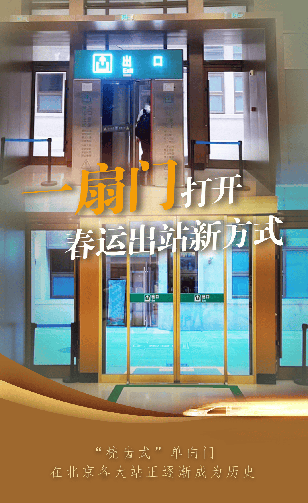 “梳齿式”单向门在北京各大站正逐渐成为历史,一扇门的改变,体现了铁路服务思路的转变,更加通透、更加开放、更加周到的服务助力每一位旅客都能在出行途中感受到通畅、温暖与平安。(海报:胡傲霜)