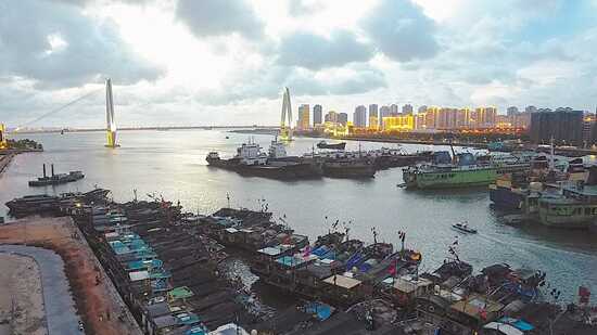 台风“韦帕”来袭,船舶在海口新港码头内停靠避风 新华社发