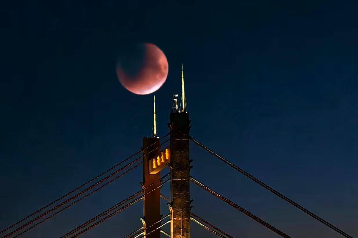 “‘红月亮’太难得了,朋友圈都刷屏了,我们特意出来看看!”9月7日深夜,市民阿曼尼萨·木喀丁和朋友在我市“克拉玛依之歌”广场观赏了月全食的壮观景象。同时,广场上还聚集着几十位架着“长枪短炮”的摄影爱好者、天文爱好者和新闻工作者。 当天午夜至9月8日凌晨,今年中国境内唯一一次全程可见的月全食亮相夜空,天空出现了罕见的“红月亮”。 月食,在古时被称为“天狗食月”。它发生在太阳、地球、月球三者恰好或近似排列成一线之际。此时,月球穿越地球的阴影区域,位于月球与地球之间的地带便会目睹太阳光因地球遮挡而形成的月球局部缺失,这一现象便是月食。而当月球完全进入地球的本影之中,便会呈现出月全食的景象。 即便在全食期间,月亮也不会彻底消失在夜空之中。这是因为地球的大气层能够折射太阳的光线,使得部分阳光依然能触及月球表面。然而,波长短的蓝光在穿越地球大气时容易被吸收和散射,因此,最终抵达月球的光线以波长较长的红光和橙光为主,这就使得月亮呈现出了“红月”的样子。 市摄影家协会主席闵勇说:“我们挑选了‘克拉玛依之歌’雕塑、友谊大桥等地标性建筑及油田生产现场作为摄影背景,目的就是让‘红月亮’与克拉玛依的美景相映成趣。” 当晚,人民日报客户端、微博、视频号同步直播全国各地月全食景观,克拉玛依频频亮相。 市摄影家协会会员艾克热木江·帕尔哈提和田治民配合人民日报社,直播了克拉玛依月全食景象。 “看到直播页面上标注的‘新疆克拉玛依’字样,我内心非常激动,我们凭借自身的专业技术,让全国人民看到了克拉玛依的美丽风光!”田治民说。 此次月全食自9月7日夜里23时28分半影食开始,9月8日凌晨02时12分迎来“红月亮”最圆满、色彩最为浓烈的辉煌瞬间,9月8日凌晨04时55分半影食结束。 “红月亮”难得一见,上一次我国可见全过程的月全食在2022年11月8日;而下一次可见全过程的月全食则要等到2028年12月31日至2029年1月1日。