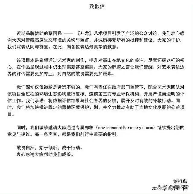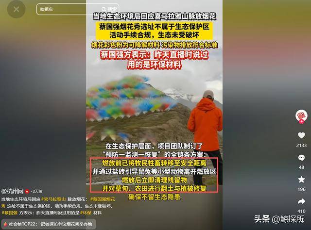 [时事新闻] 蔡国强联动始祖鸟喜马拉雅烟花秀引环保担忧,学者:高原特殊,勿用城市标准 |